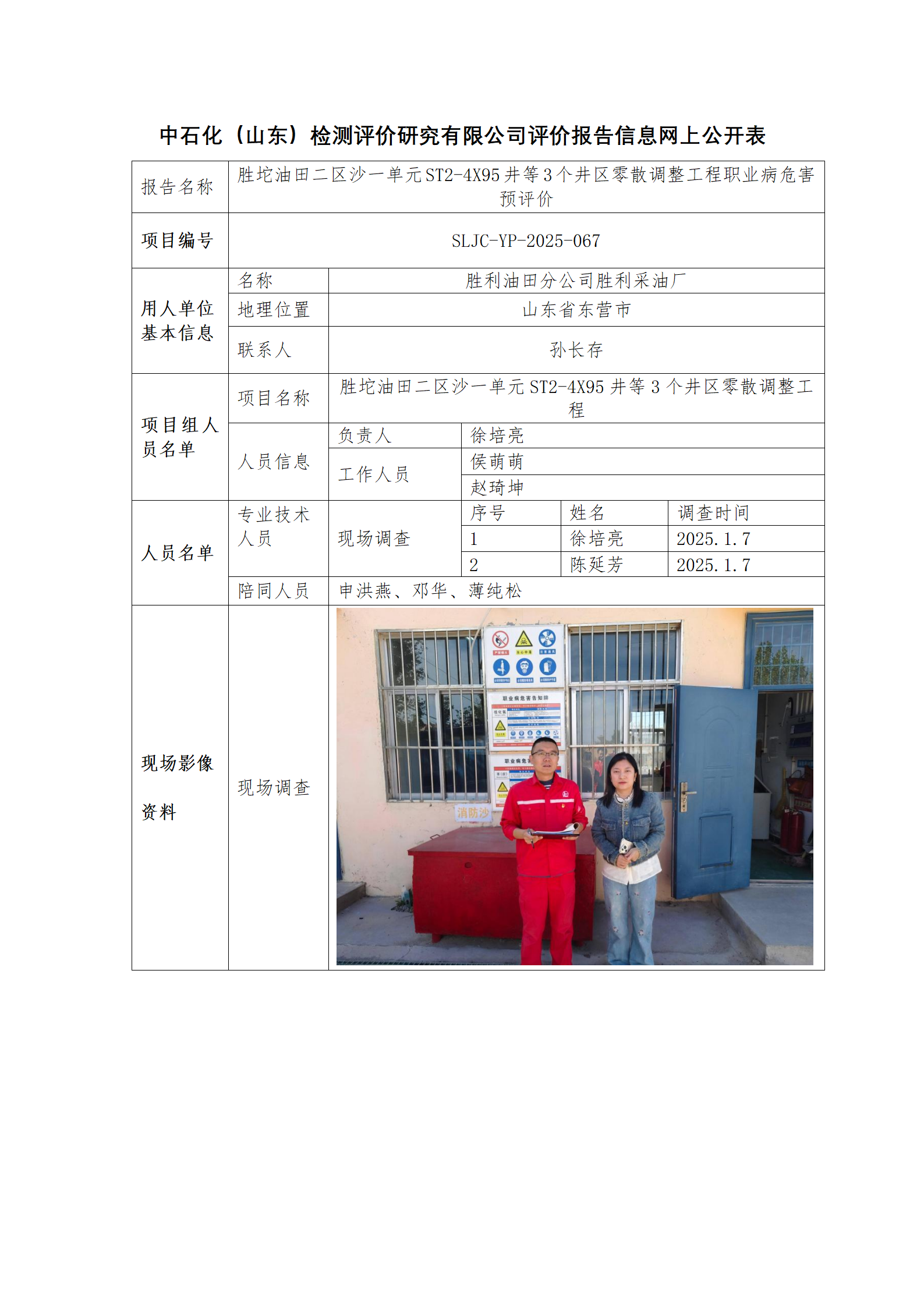 胜坨油田二区沙一单元ST2-4X95井等3个井区零散调整工程职业病危害预评价