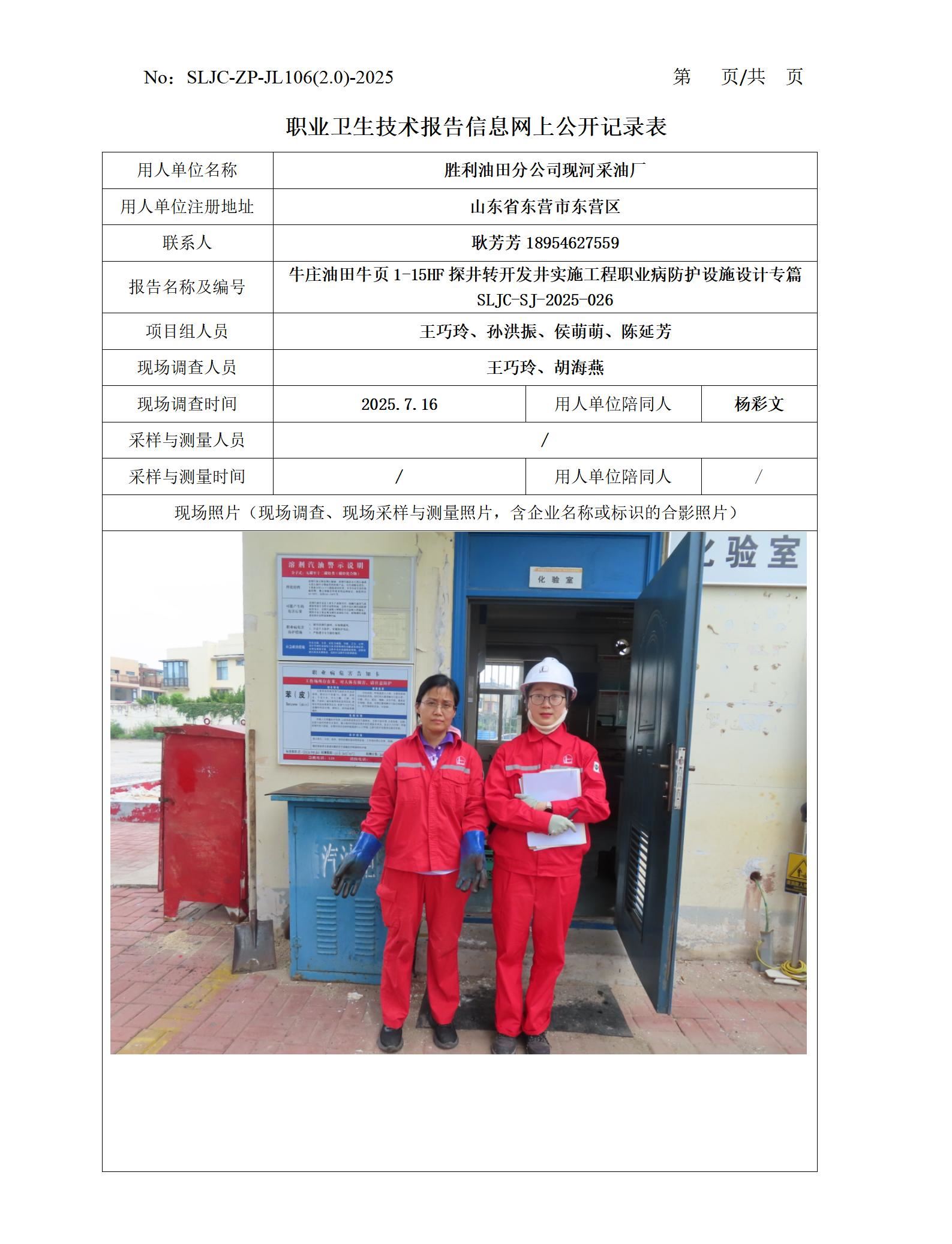 牛庄油田牛页1-15HF探井转开发井实施工程职业病防护设施设计专篇SLJC-SJ-2025-026
