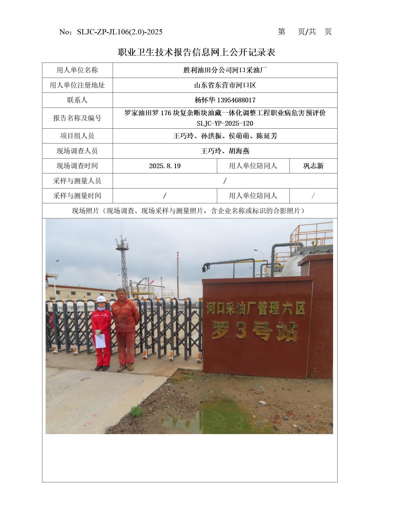 罗家油田罗176块复杂断块油藏一体化调整工程职业病危害预评价SLJC-YP-2025-120