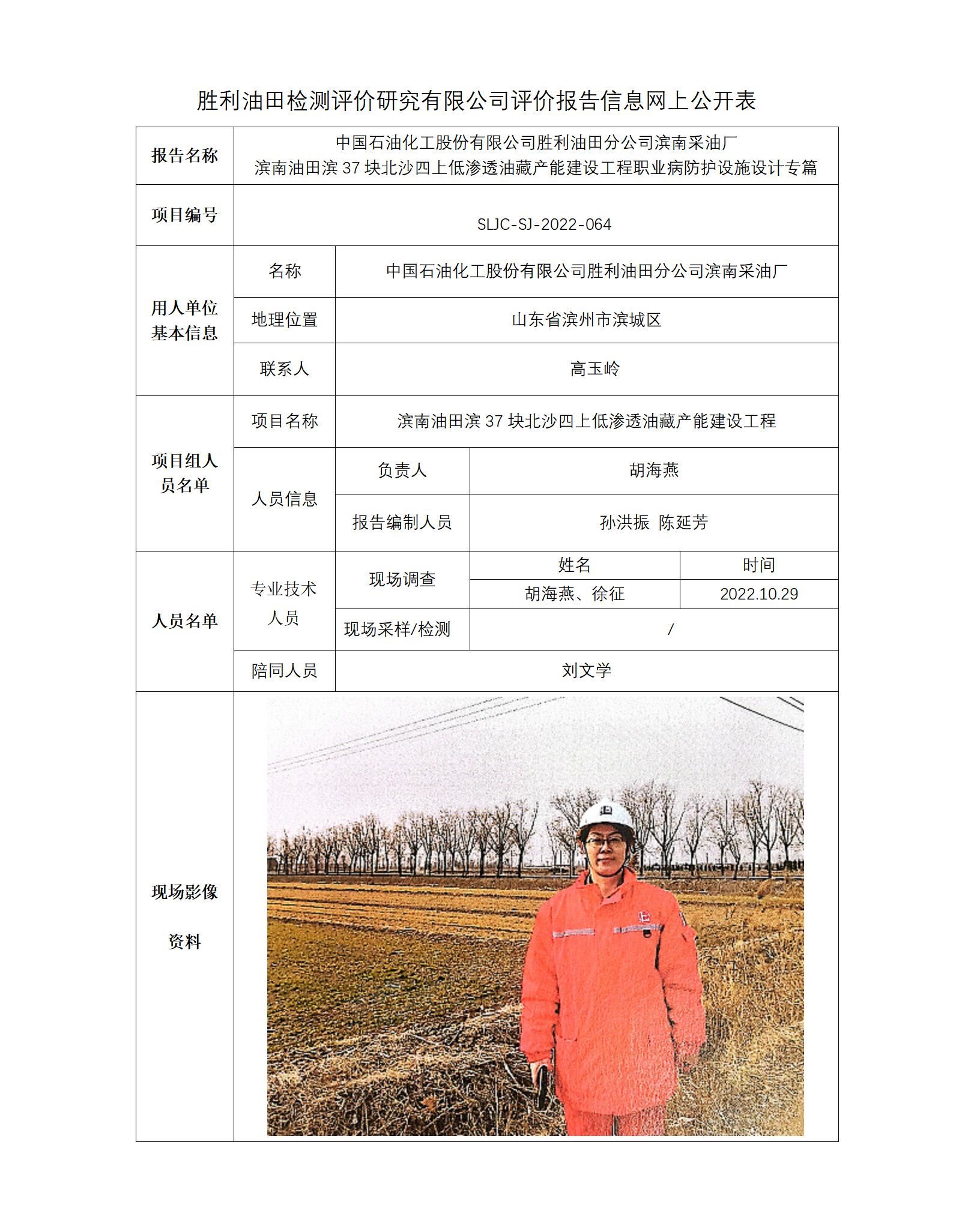 中国石油化工股份有限公司胜利油田分公司滨南采油厂滨南油田滨37块北沙四上低渗透油藏产能建设工程职业病防护设施设计专篇