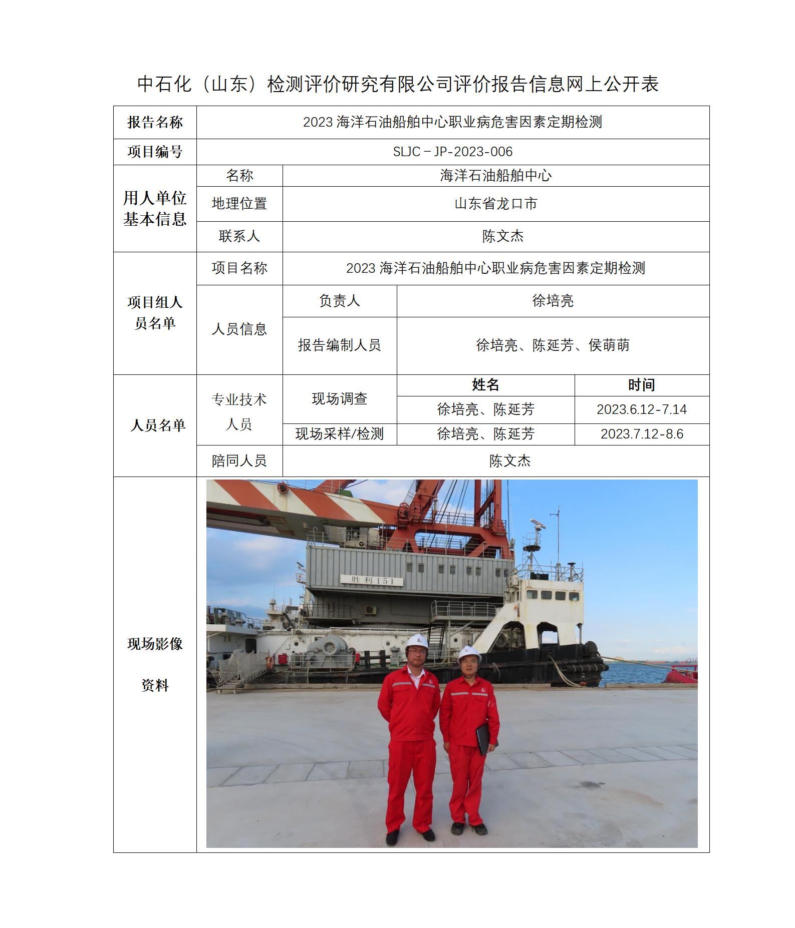 2023海洋石油船舶中心职业病危害因素定期检测