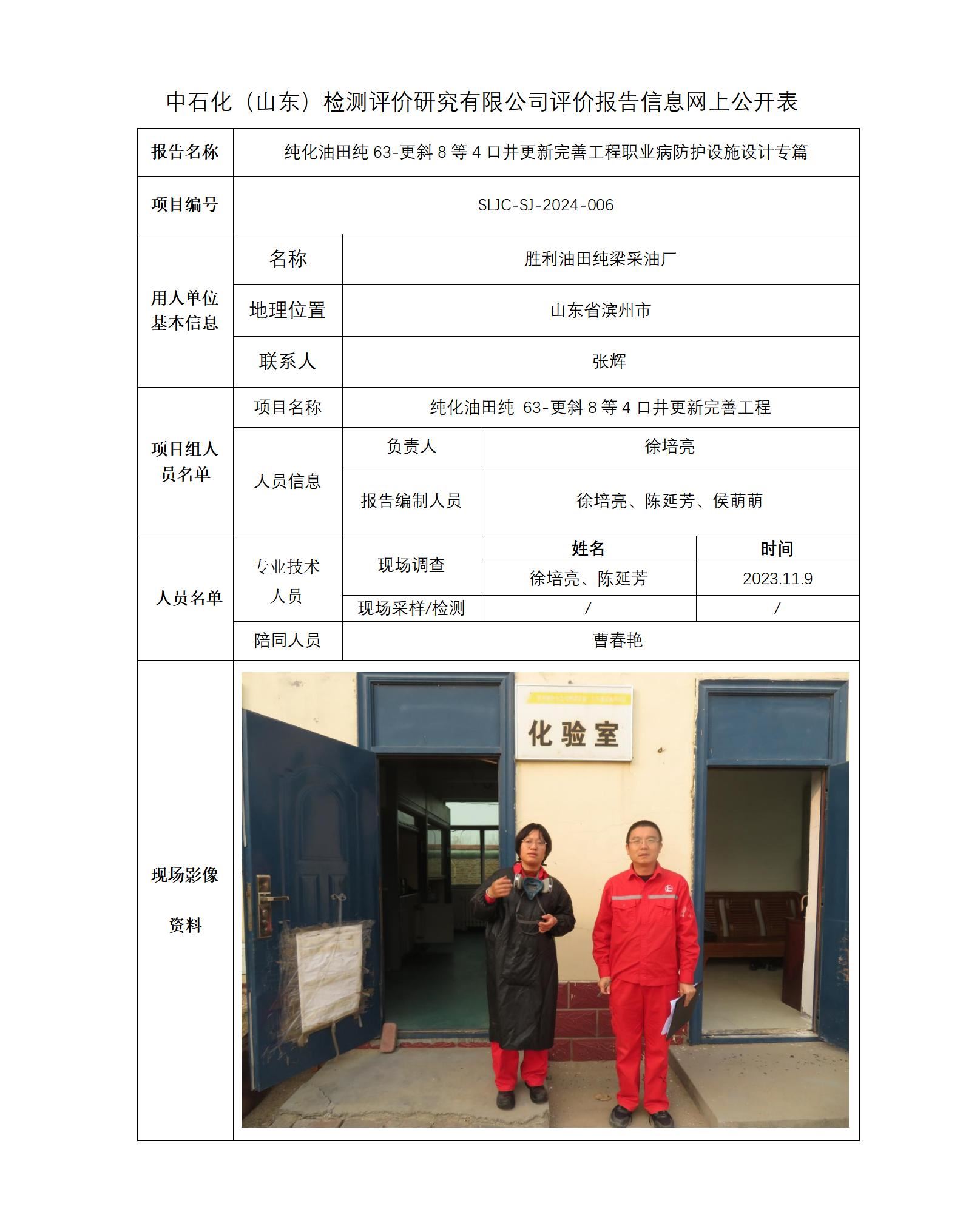 纯化油田纯63-更斜8等4口井更新完善工程职业病防护设施设计专篇