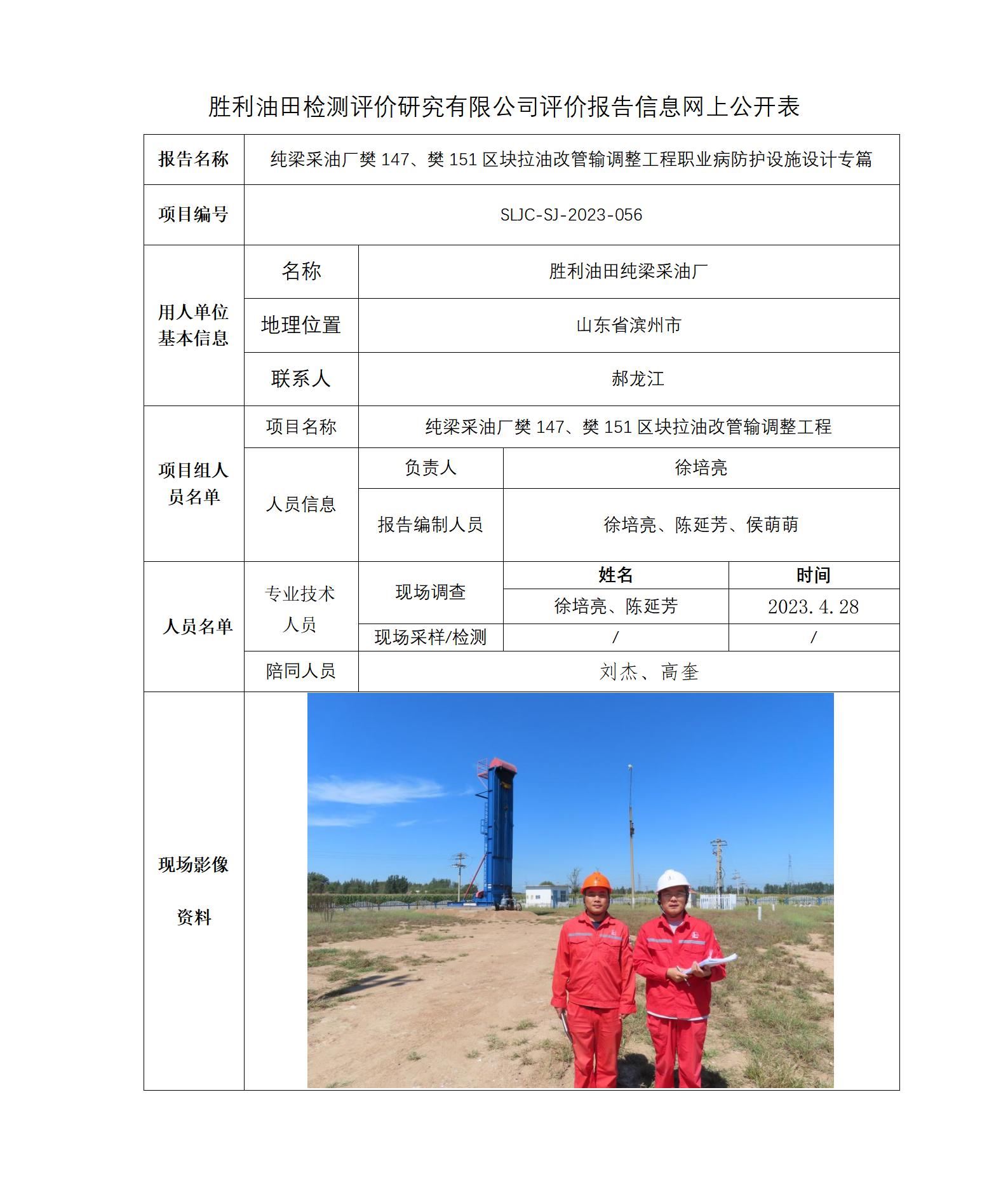纯梁采油厂樊147、樊151区块拉油改管输调整工程职业病防护设施设计专篇