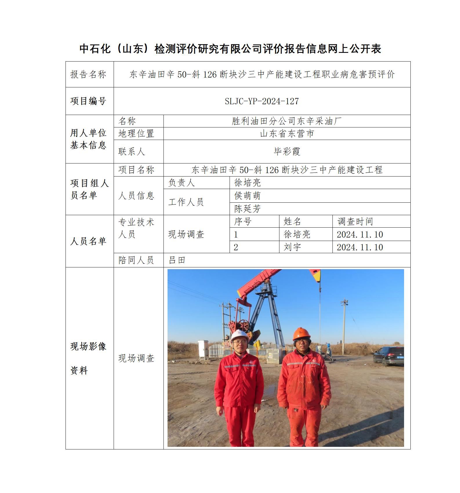 东辛油田辛50-斜126断块沙三中产能建设工程职业病危害预评价