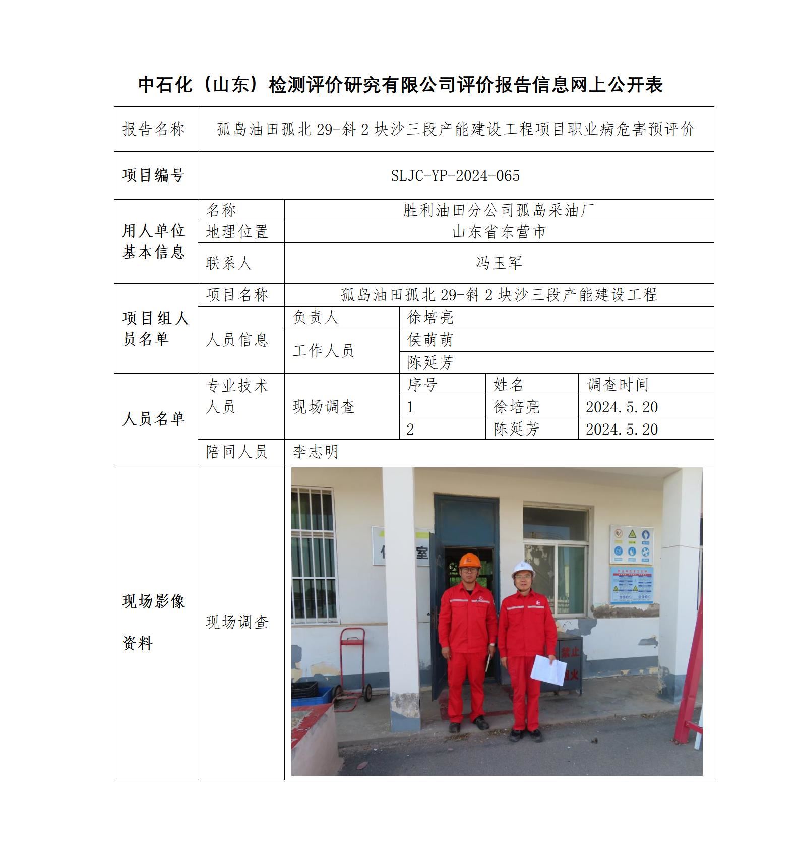 孤岛油田孤北29-斜2块沙三段产能建设工程项目职业病危害预评价