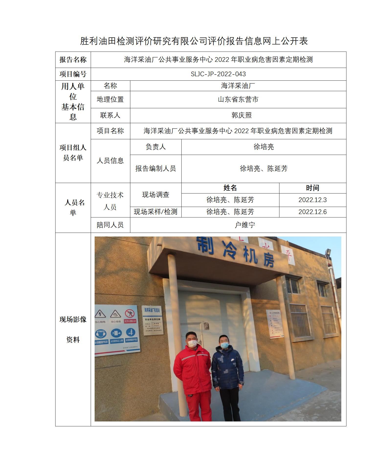 海洋采油厂公共事业服务中心2022年职业病危害因素定期检测