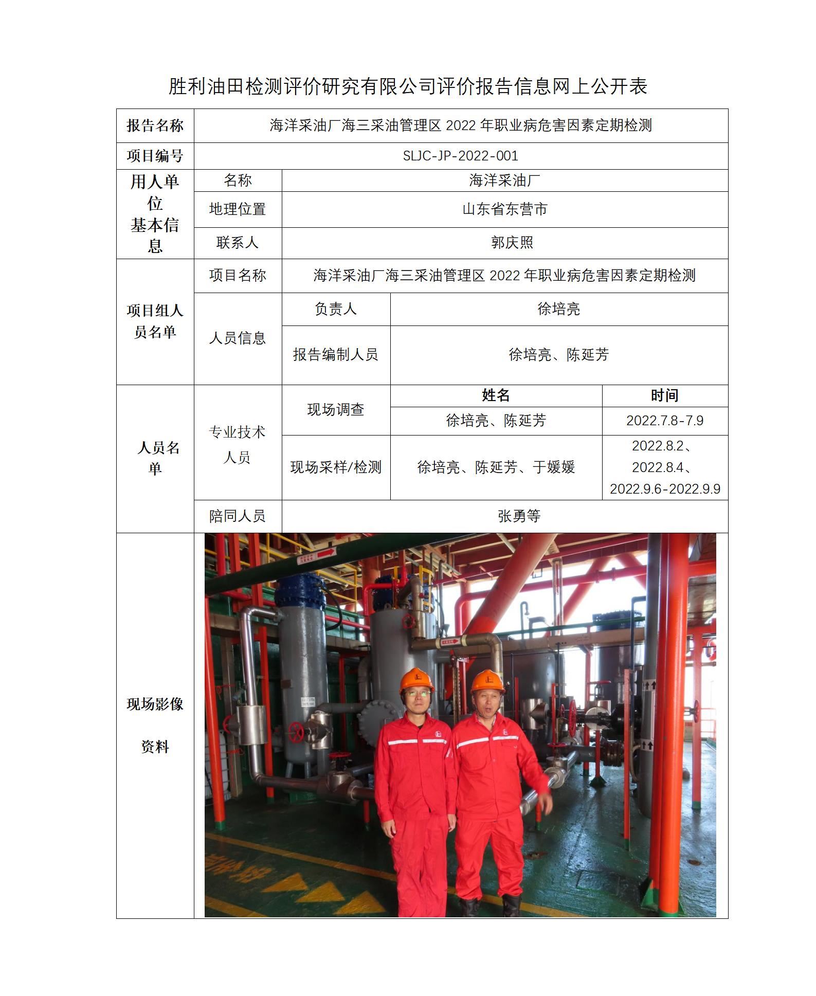 海洋采油厂海三采油管理区2022年职业病危害因素定期检测