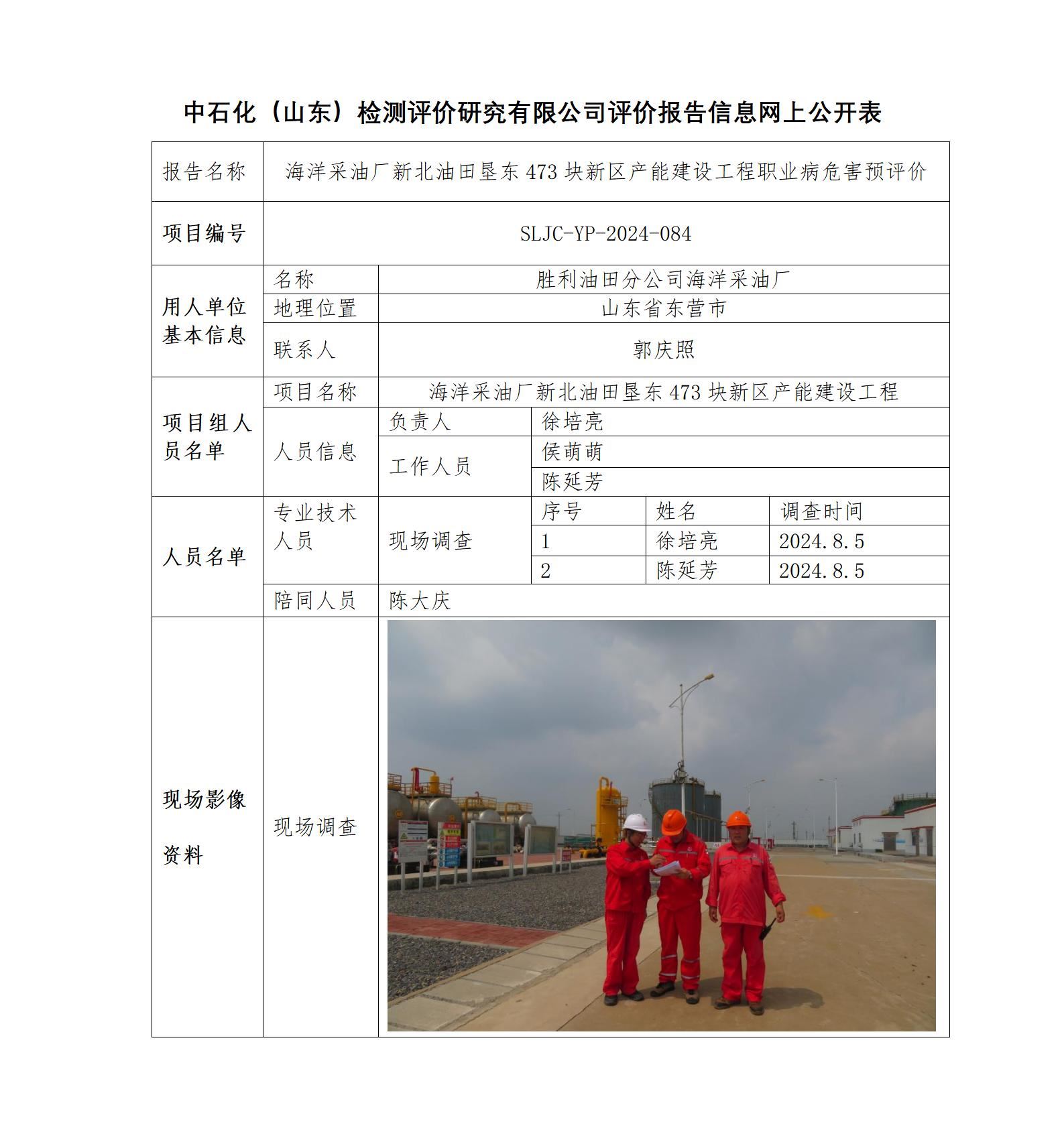 海洋采油厂新北油田垦东473块新区产能建设工程职业病危害预评价