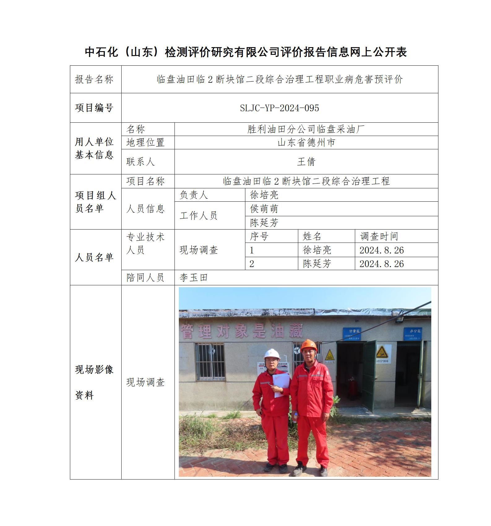 临盘油田临2断块馆二段综合治理工程职业病危害预评价