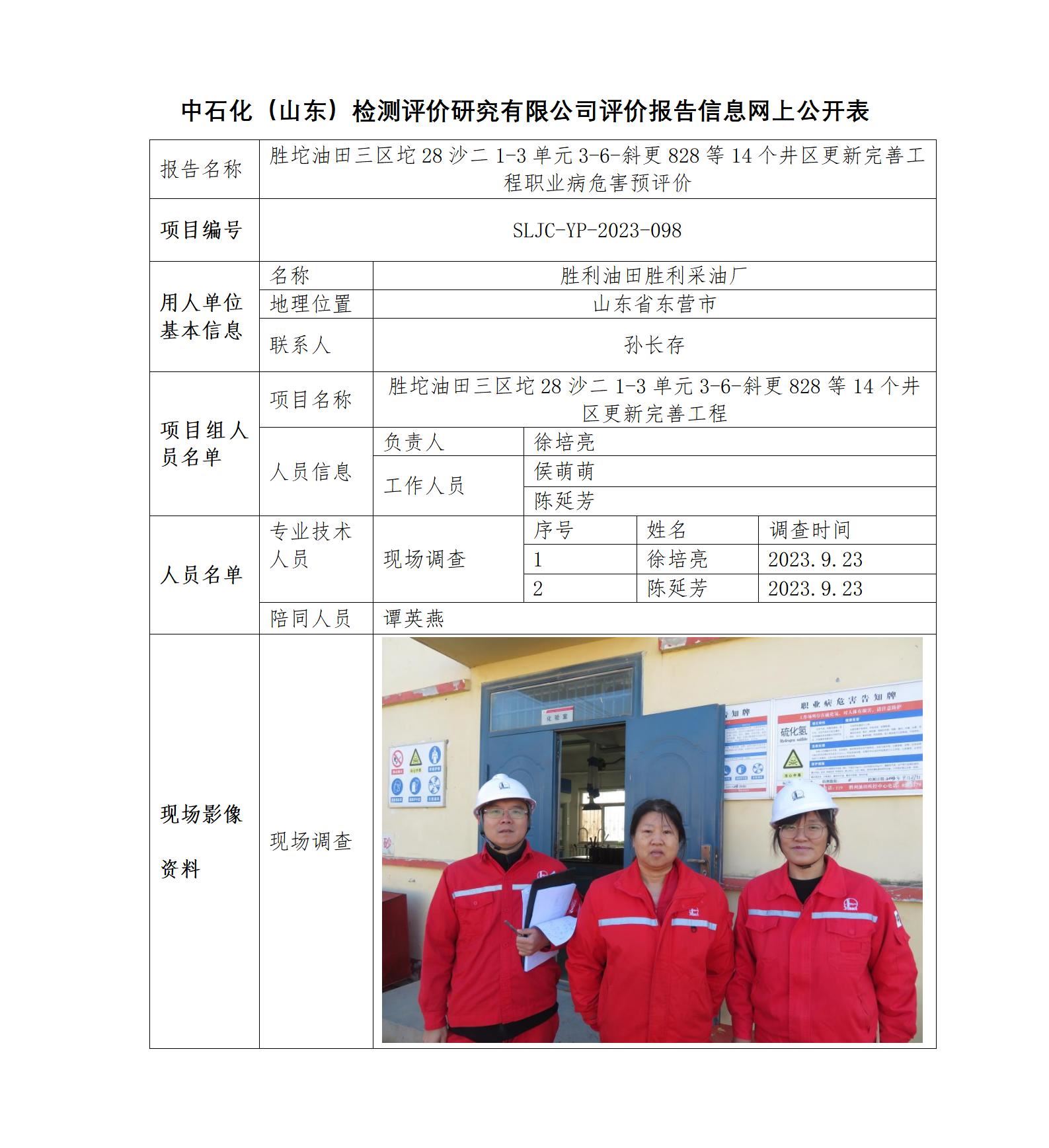 胜坨油田三区坨28沙二1-3单元3-6-斜更828等14个井区更新完善工程职业病危害预评价