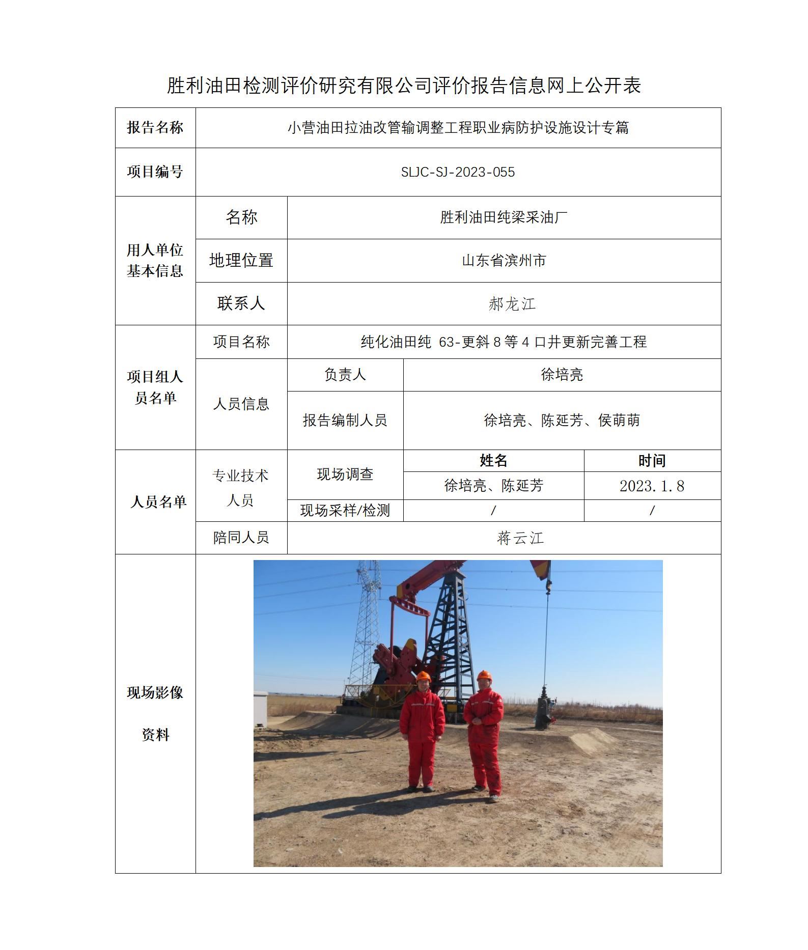 小营油田拉油改管输调整工程职业病防护设施设计专篇