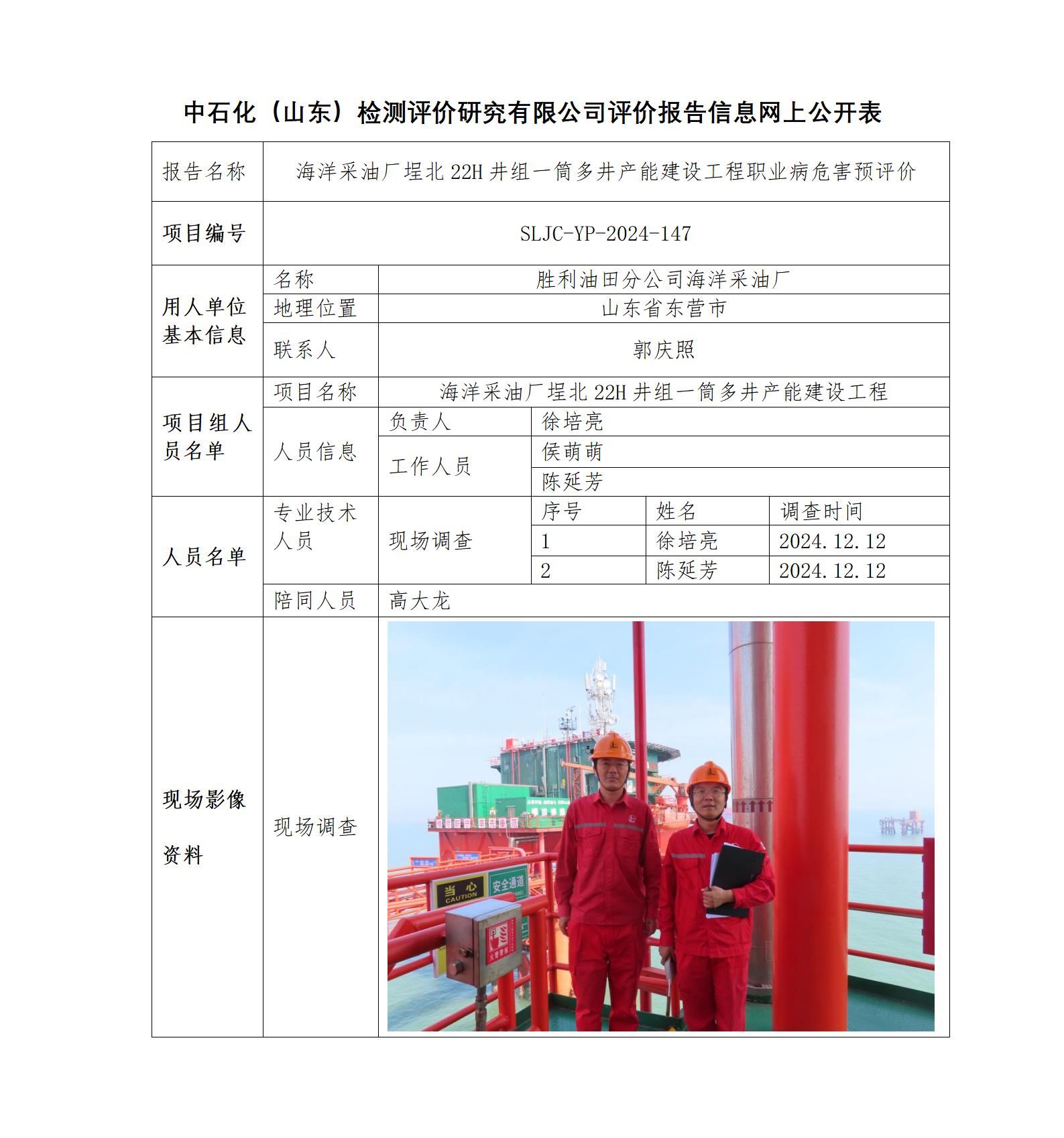 海洋采油厂埕北22H井组一筒多井产能建设工程职业病危害预评价