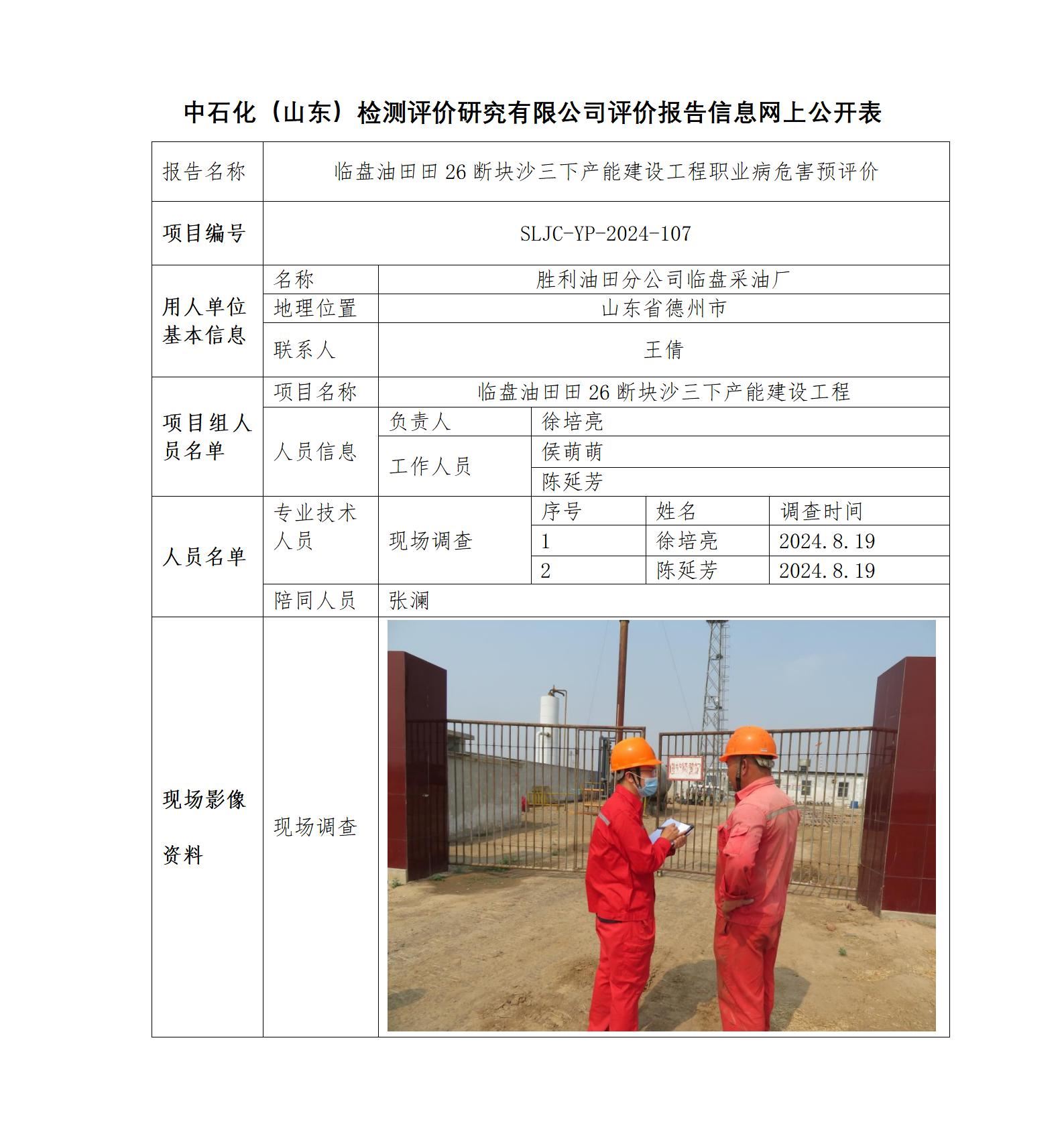 临盘油田田26断块沙三下产能建设工程职业病危害预评价