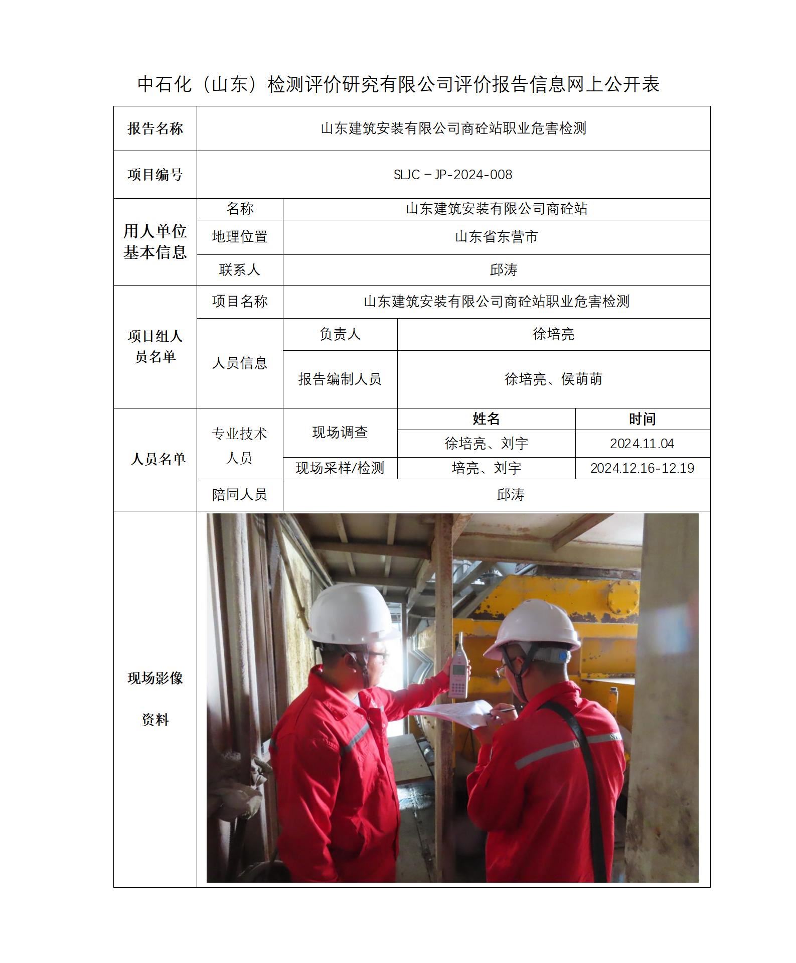 山东建筑安装有限公司商砼站职业危害检测