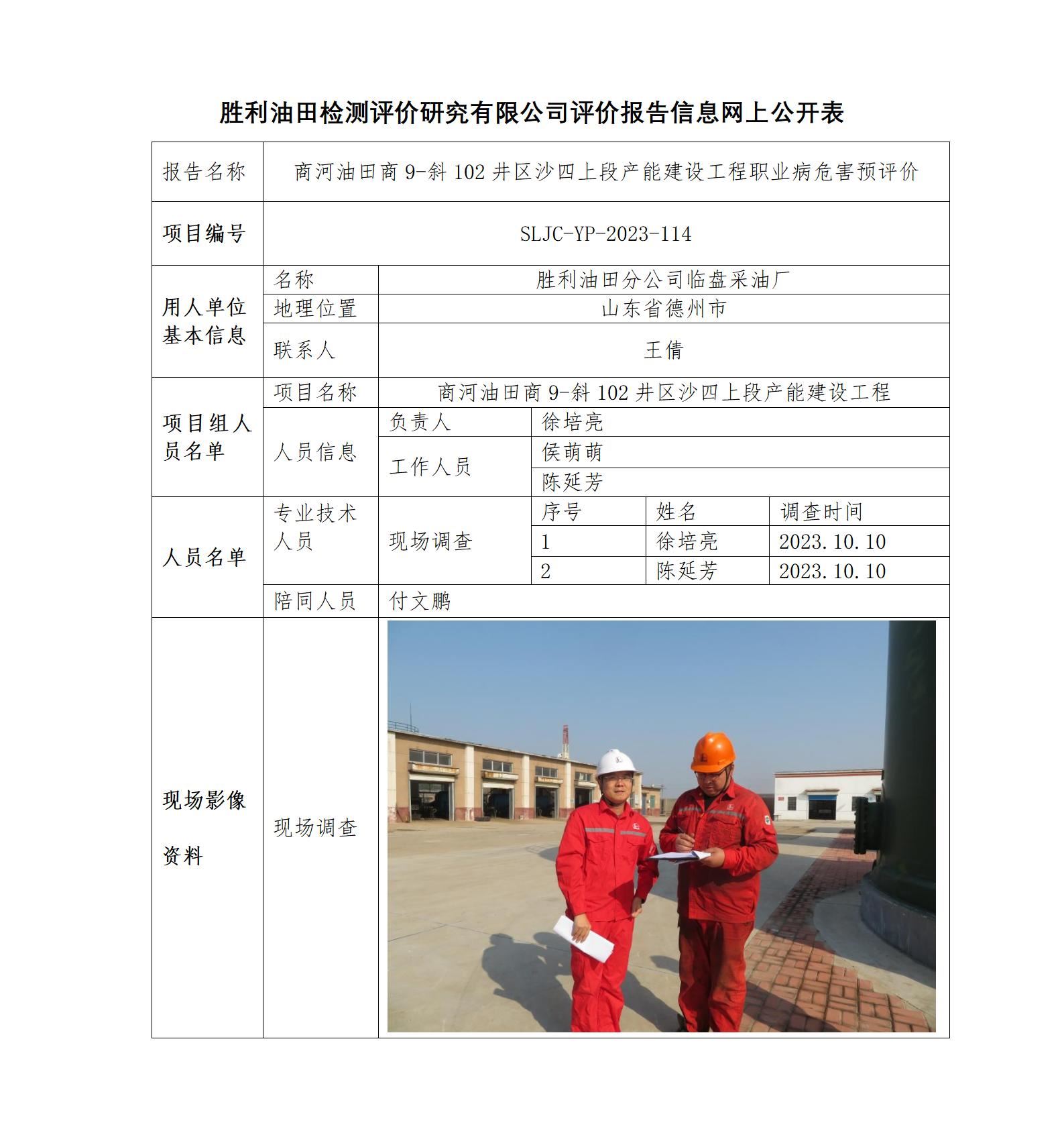 商河油田商9-斜102井区沙四上段产能建设工程职业病危害预评价
