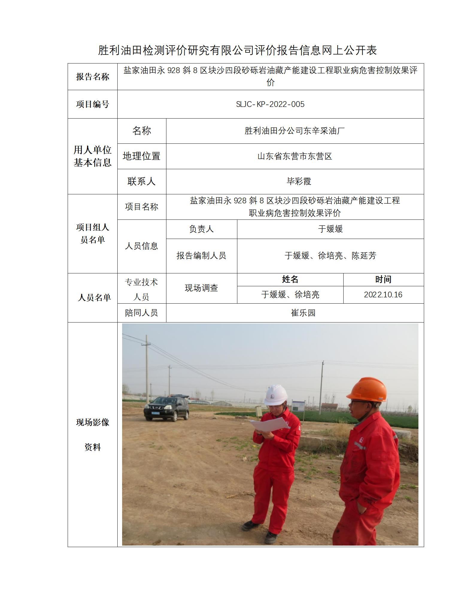 盐家油田永928斜8区块沙四段砂砾岩油藏产能建设工程职业病危害控制效果评价