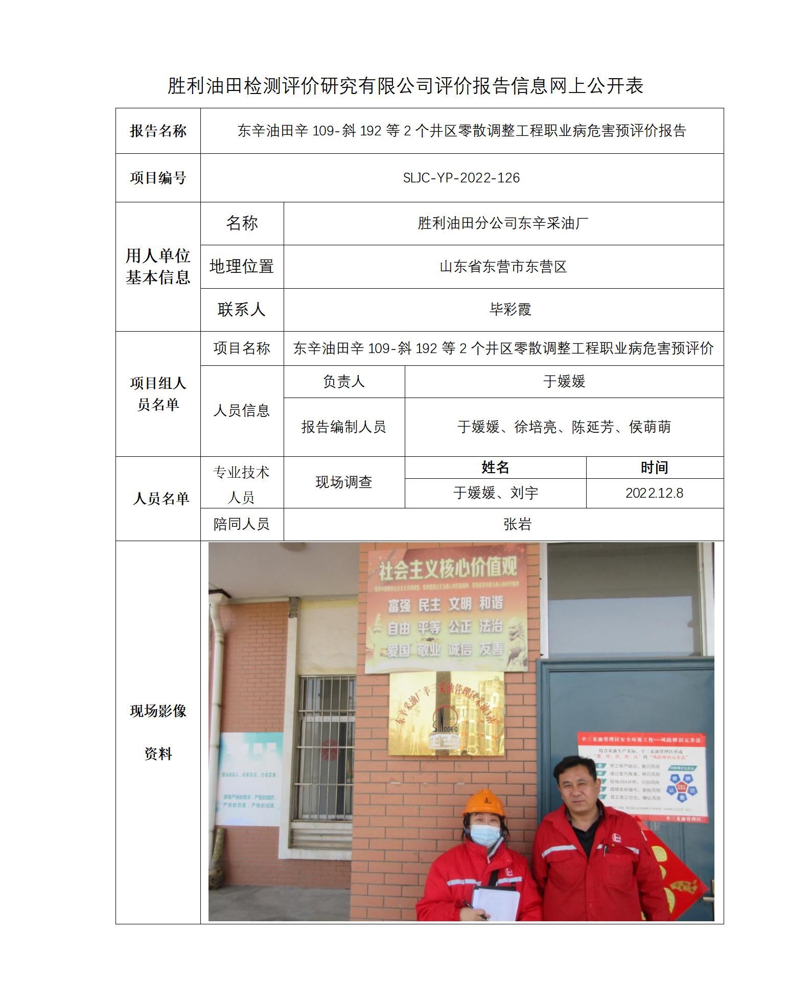 东辛油田辛109-斜192等2个井区零散调整工程职业病危害预评价报告