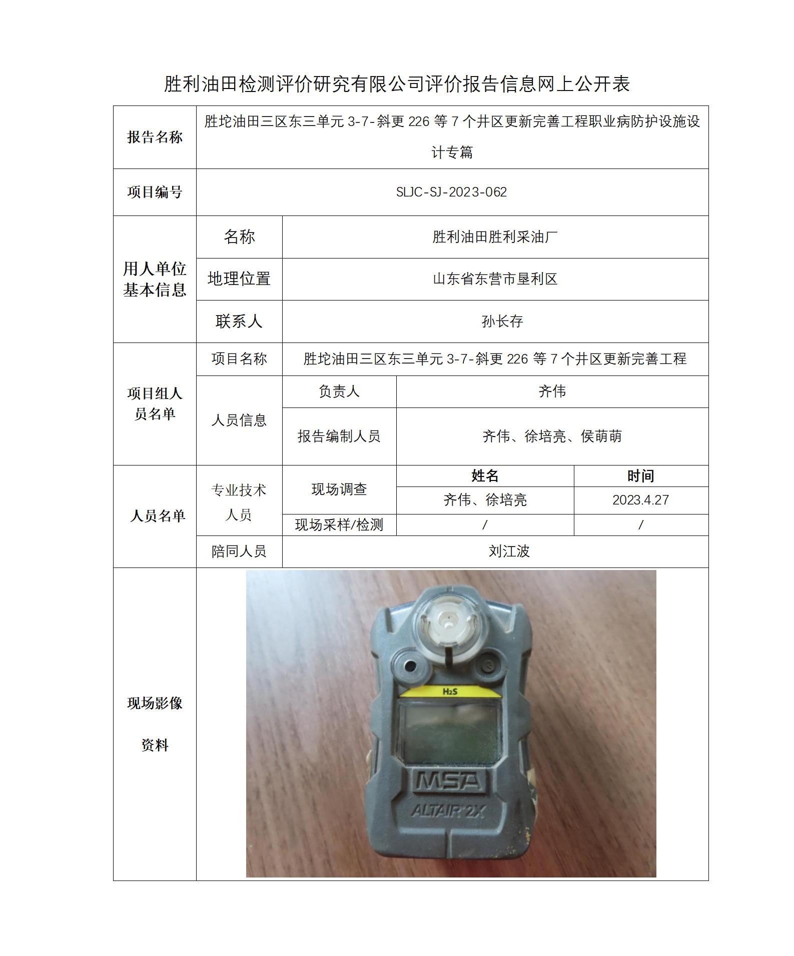 胜坨油田三区东三单元3-7-斜更226等7个井区更新完善工程职业病防护设施设计专篇