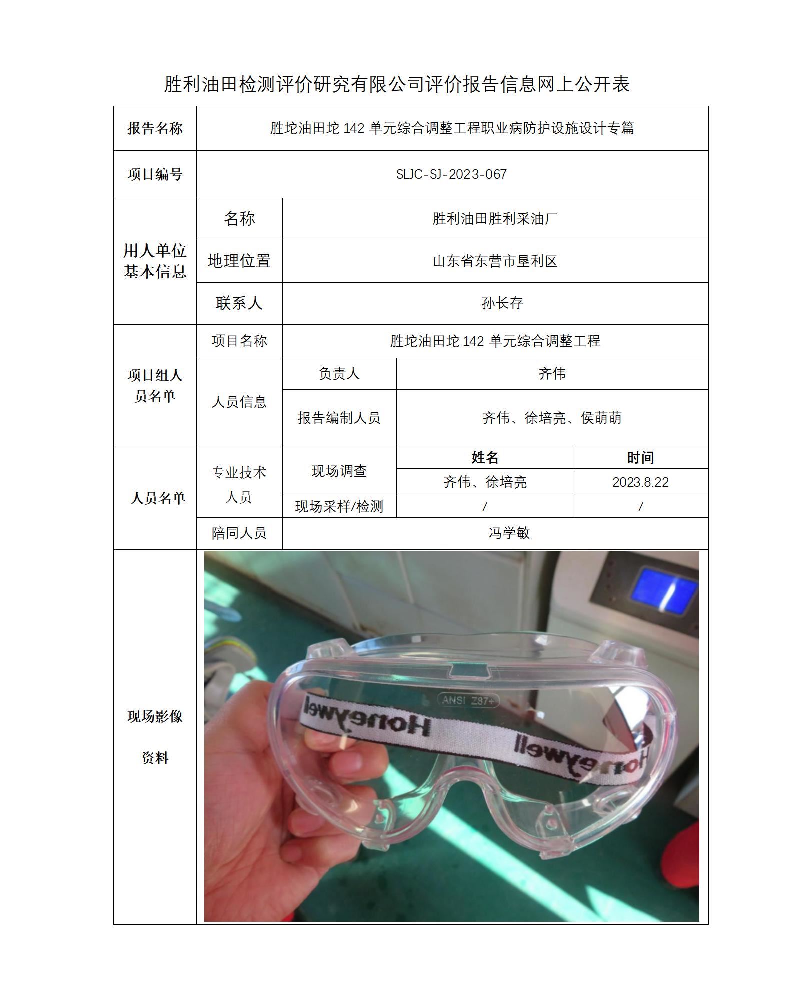 胜坨油田坨142单元综合调整工程职业病防护设施设计专篇