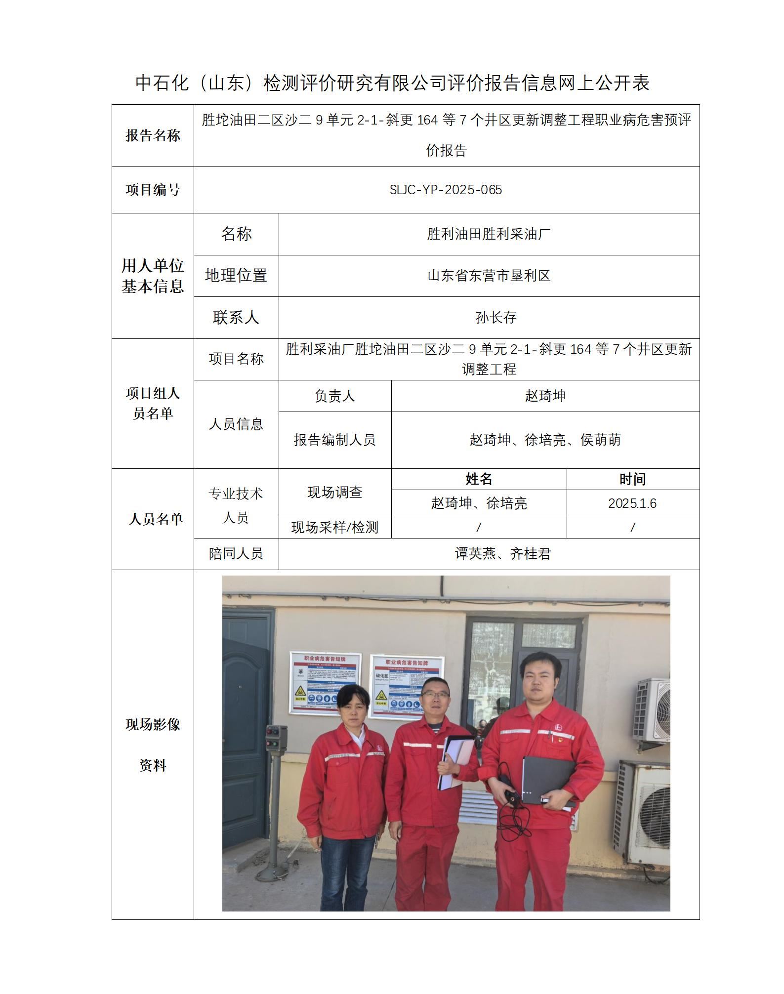 胜坨油田二区沙二9单元2-1-斜更164等7个井区更新调整工程职业病危害预评价报告