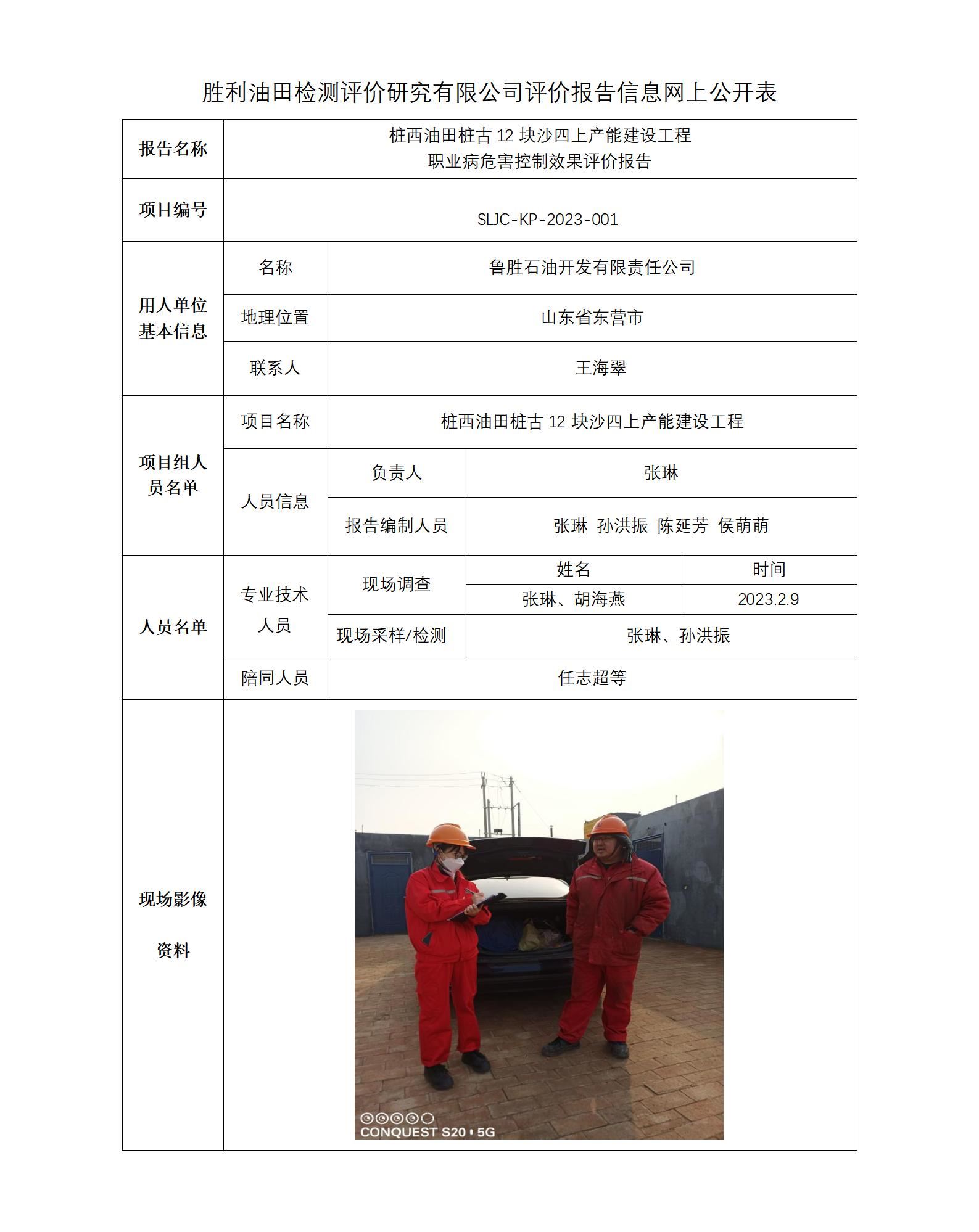 桩西油田桩古12块沙四上产能建设工程职业病危害控制效果评价报告