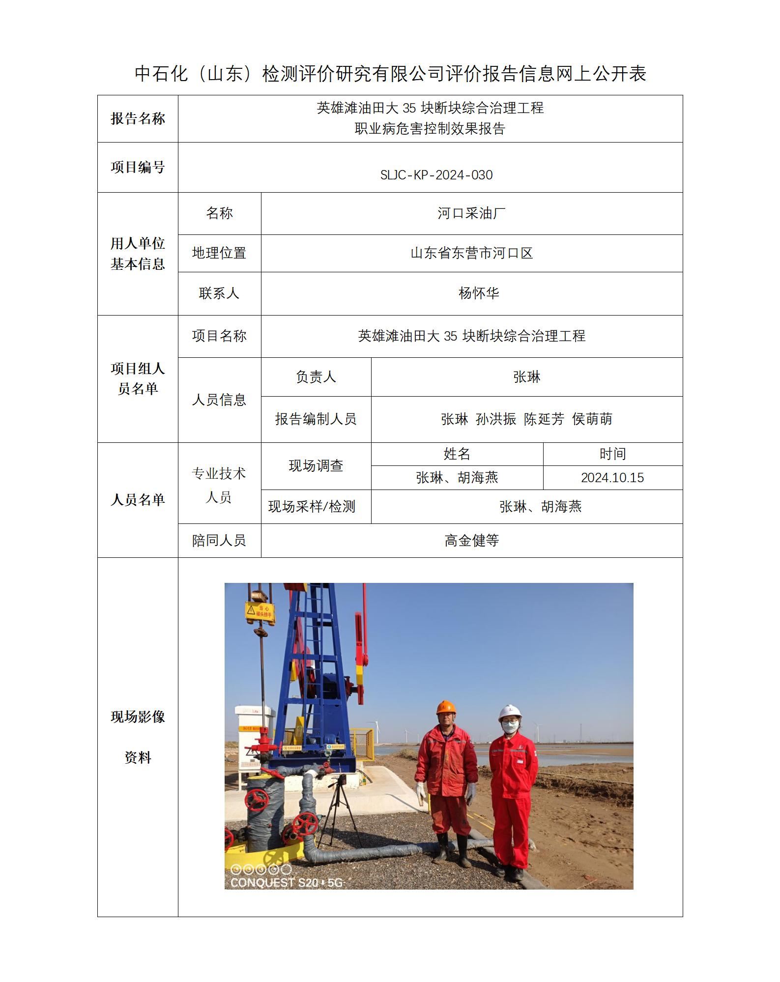 英雄滩油田大35块断块综合治理工程 职业病危害控制效果报告