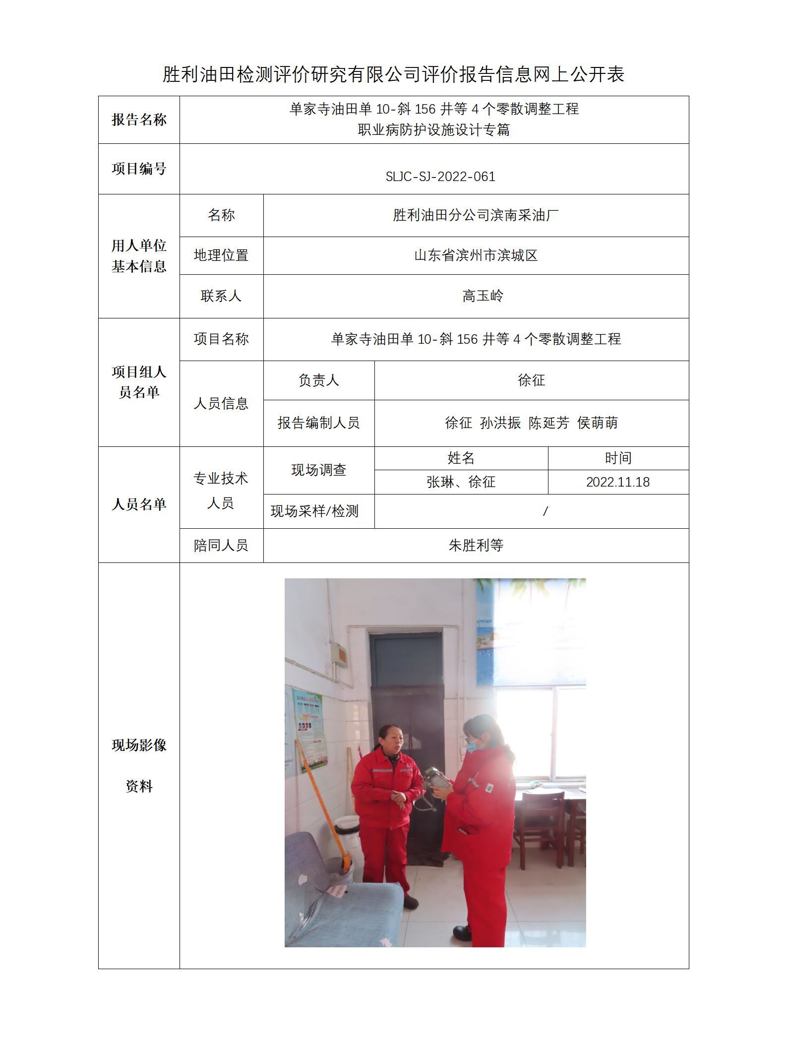 单家寺油田单10-斜156井等4个零散调整工程 职业病防护设施设计专篇