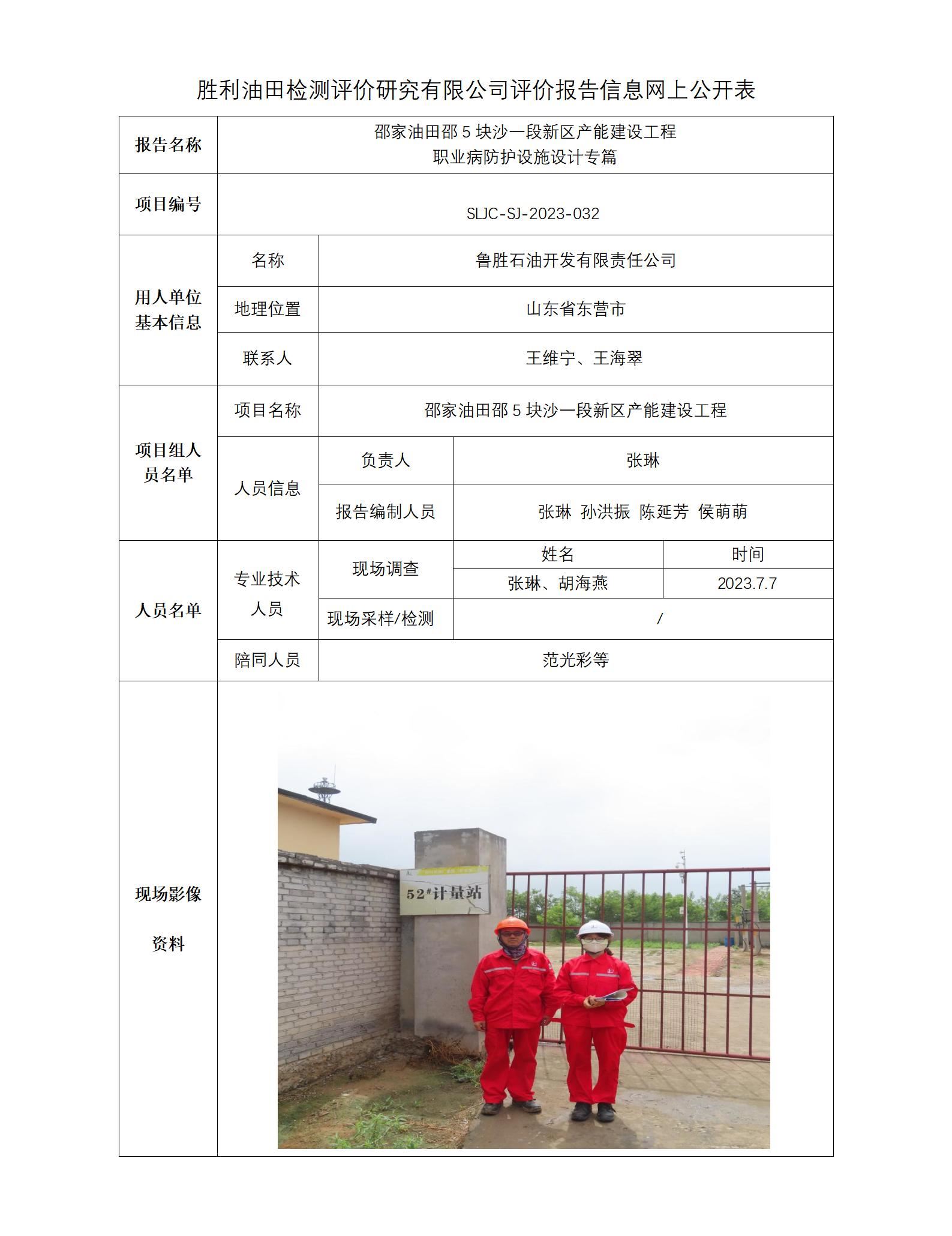 邵家油田邵5块沙一段新区产能建设工程 职业病防护设施设计专篇