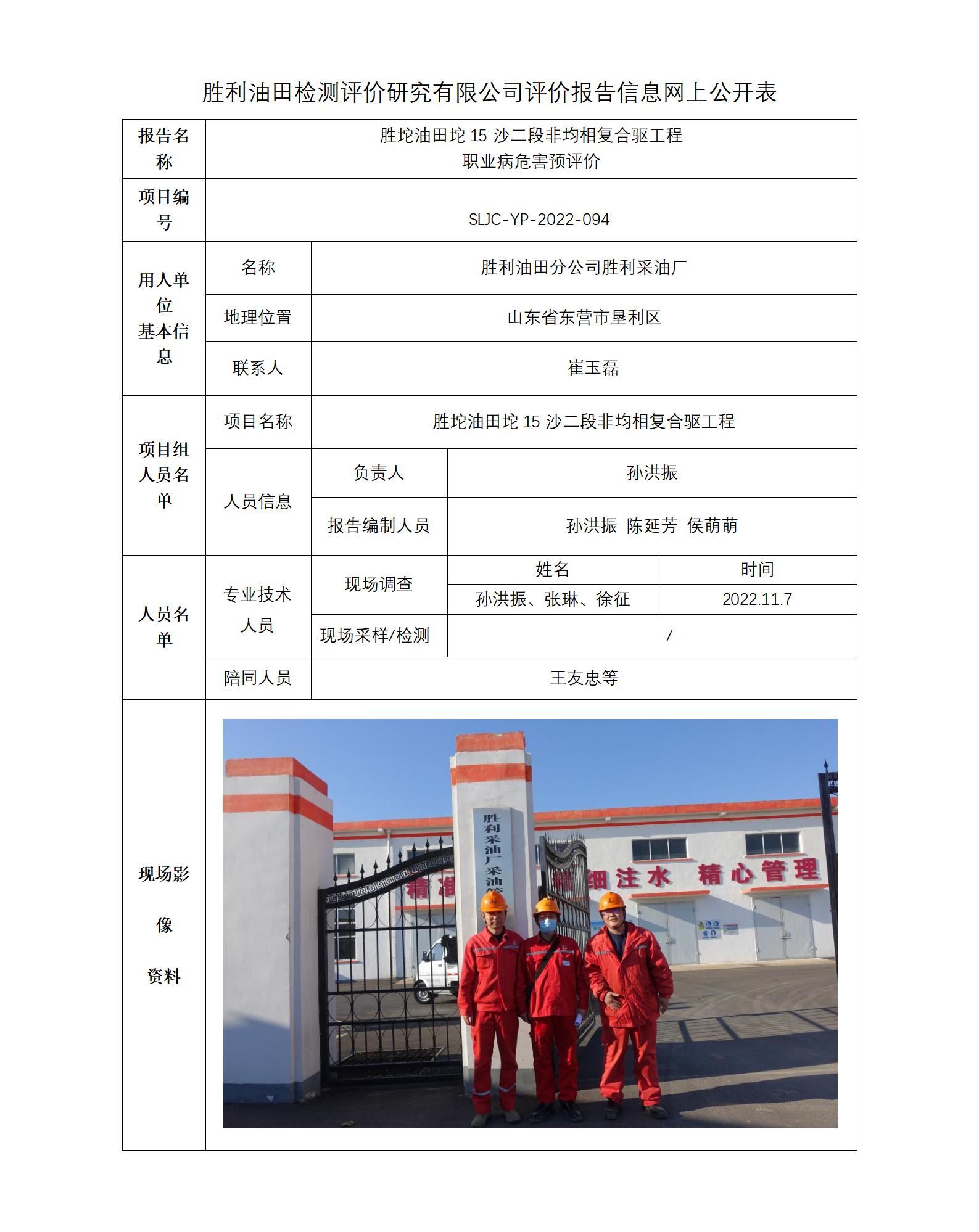 胜坨油田坨15沙二段非均相复合驱工程 职业病危害预评价