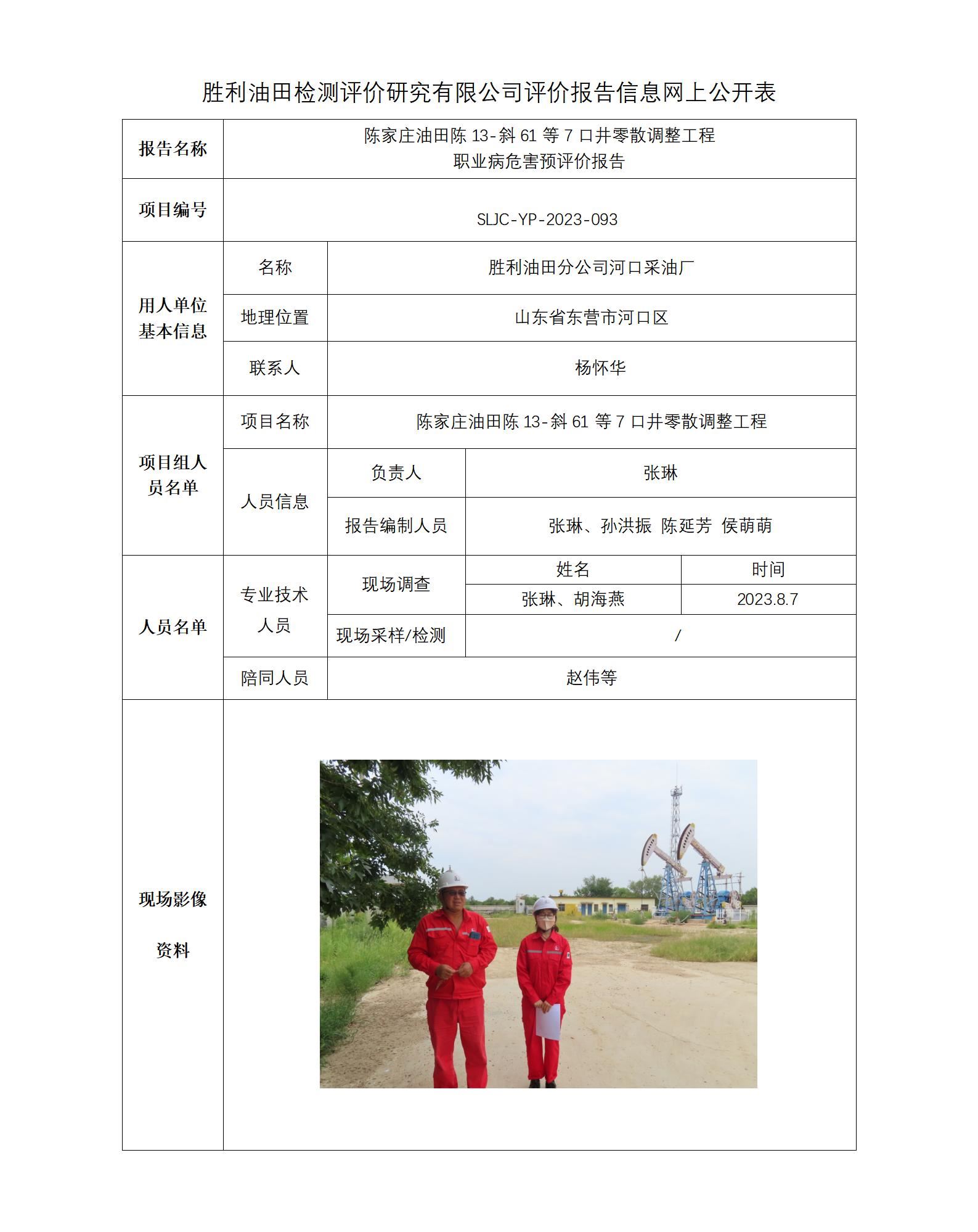 陈家庄油田陈13-斜61等7口井零散调整工程 职业病危害预评价报告