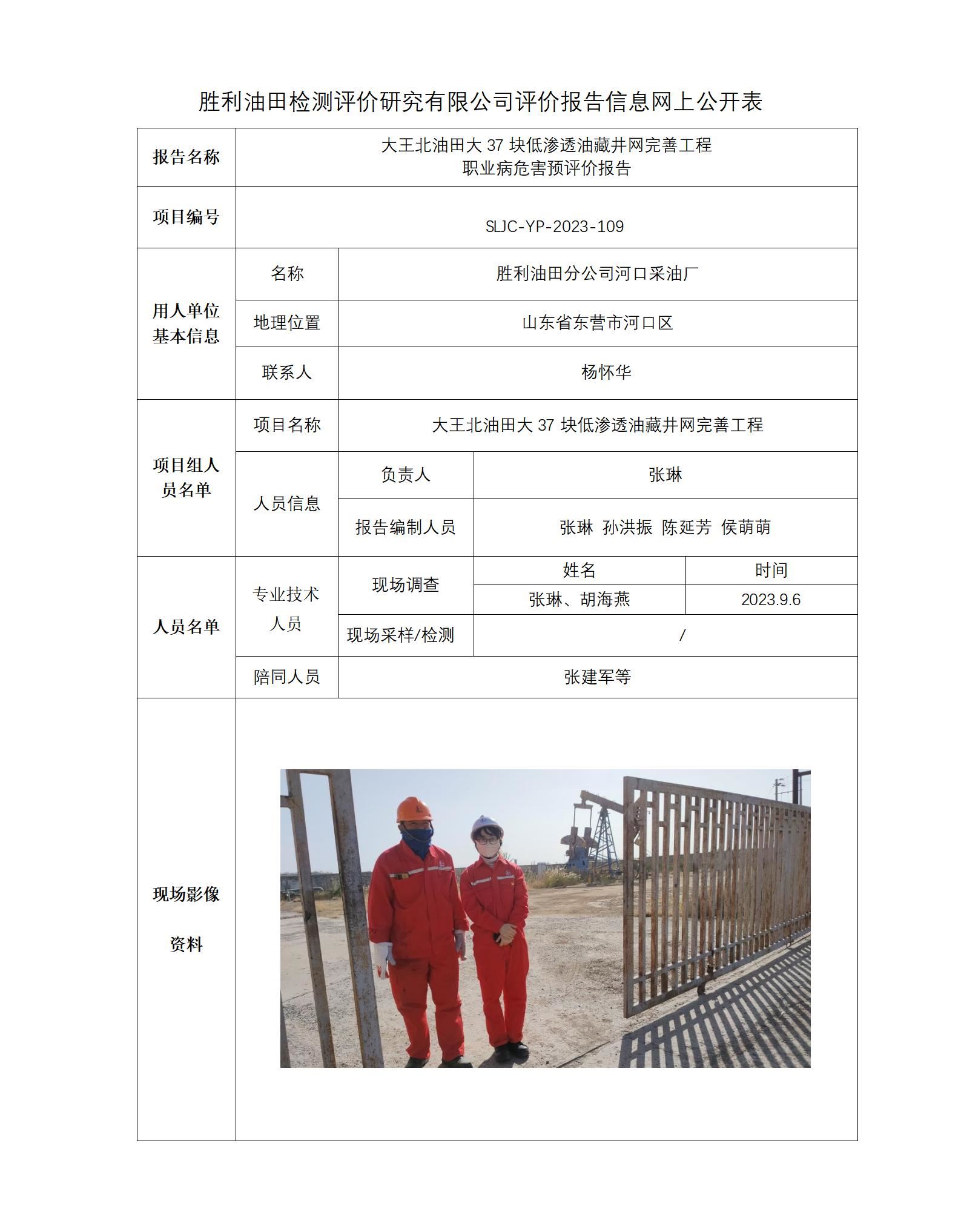 大王北油田大37块低渗透油藏井网完善工程 职业病危害预评价报告