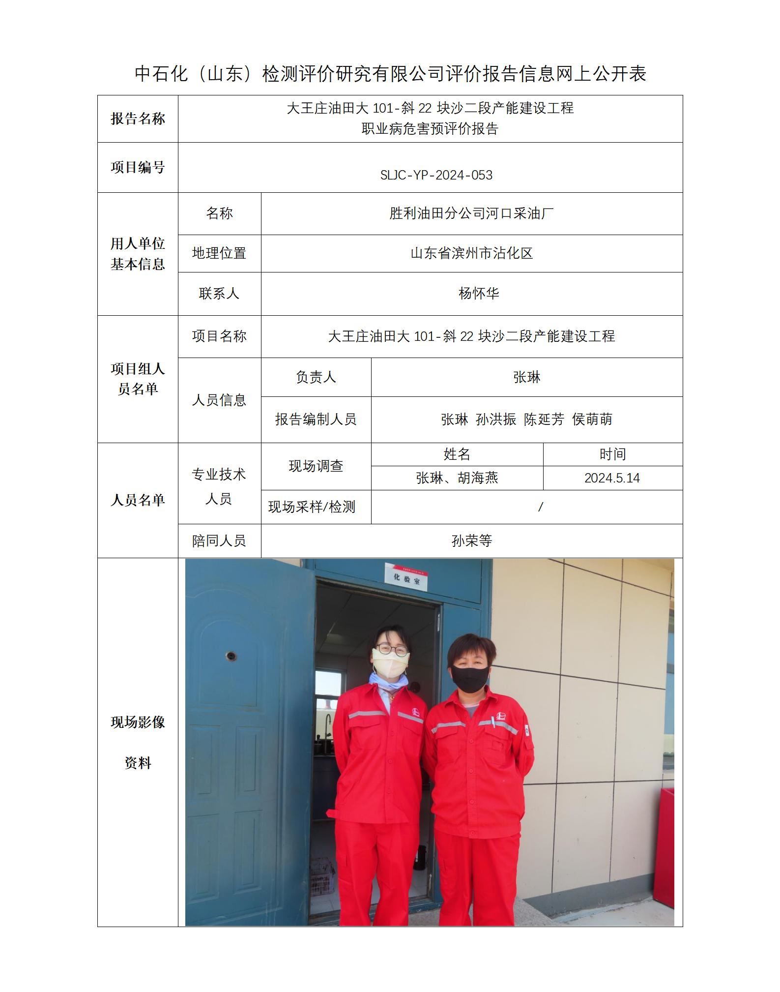 大王庄油田大101-斜22块沙二段产能建设工程 职业病危害预评价报告