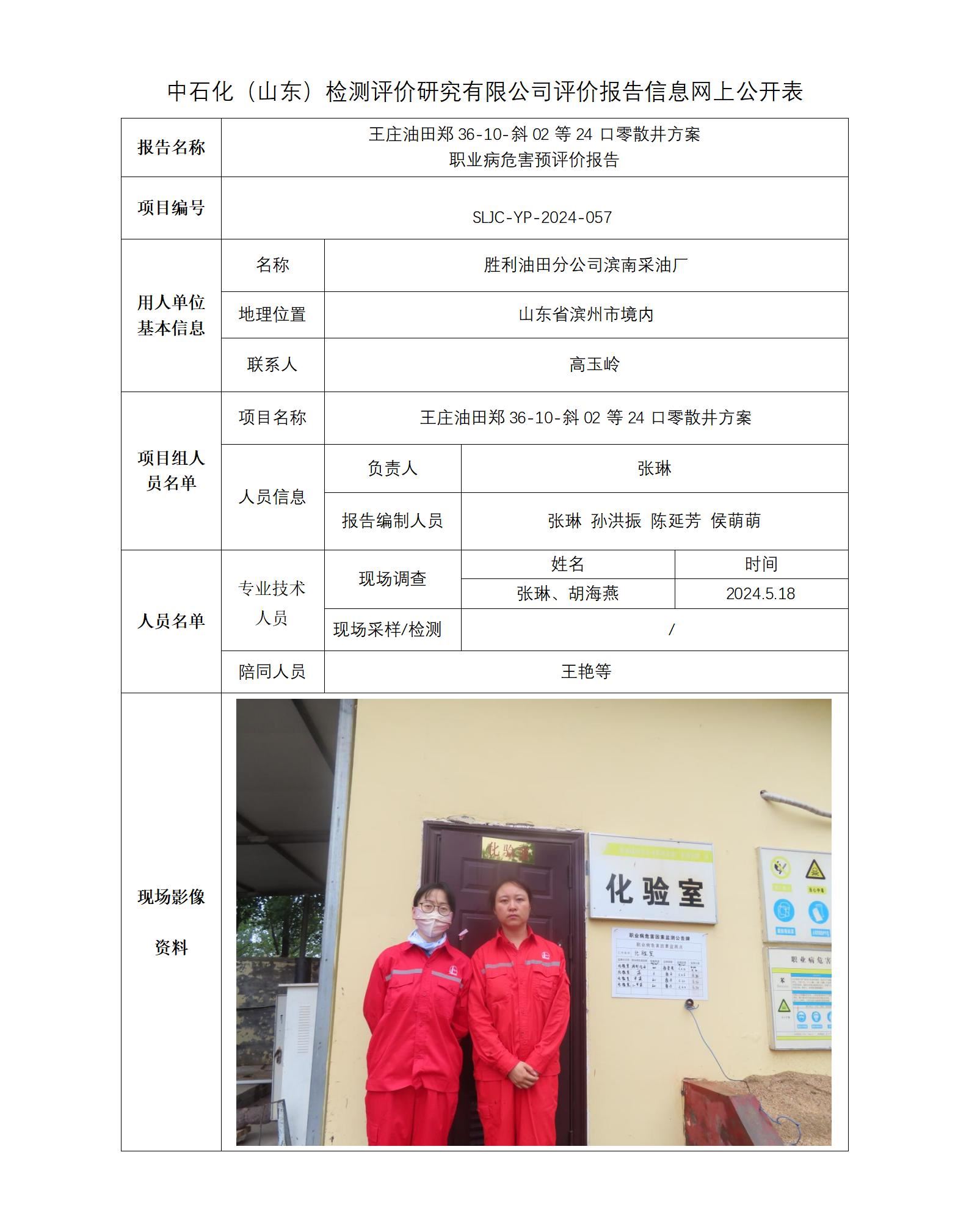 王庄油田郑36-10-斜02等24口零散井方案 职业病危害预评价报告