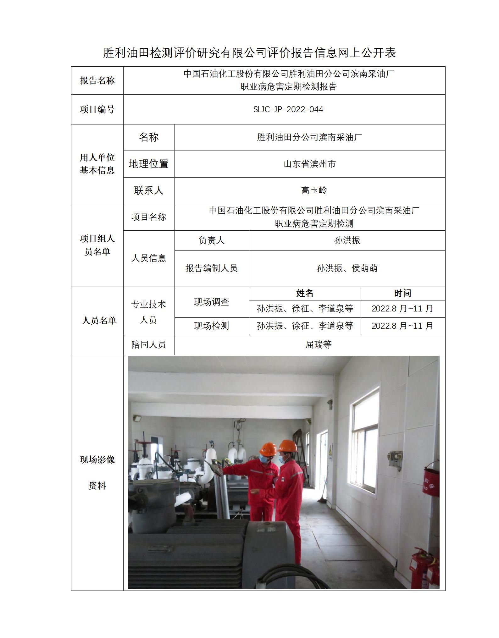 中国石油化工股份有限公司胜利油田分公司滨南采油厂 职业病危害定期检测报告