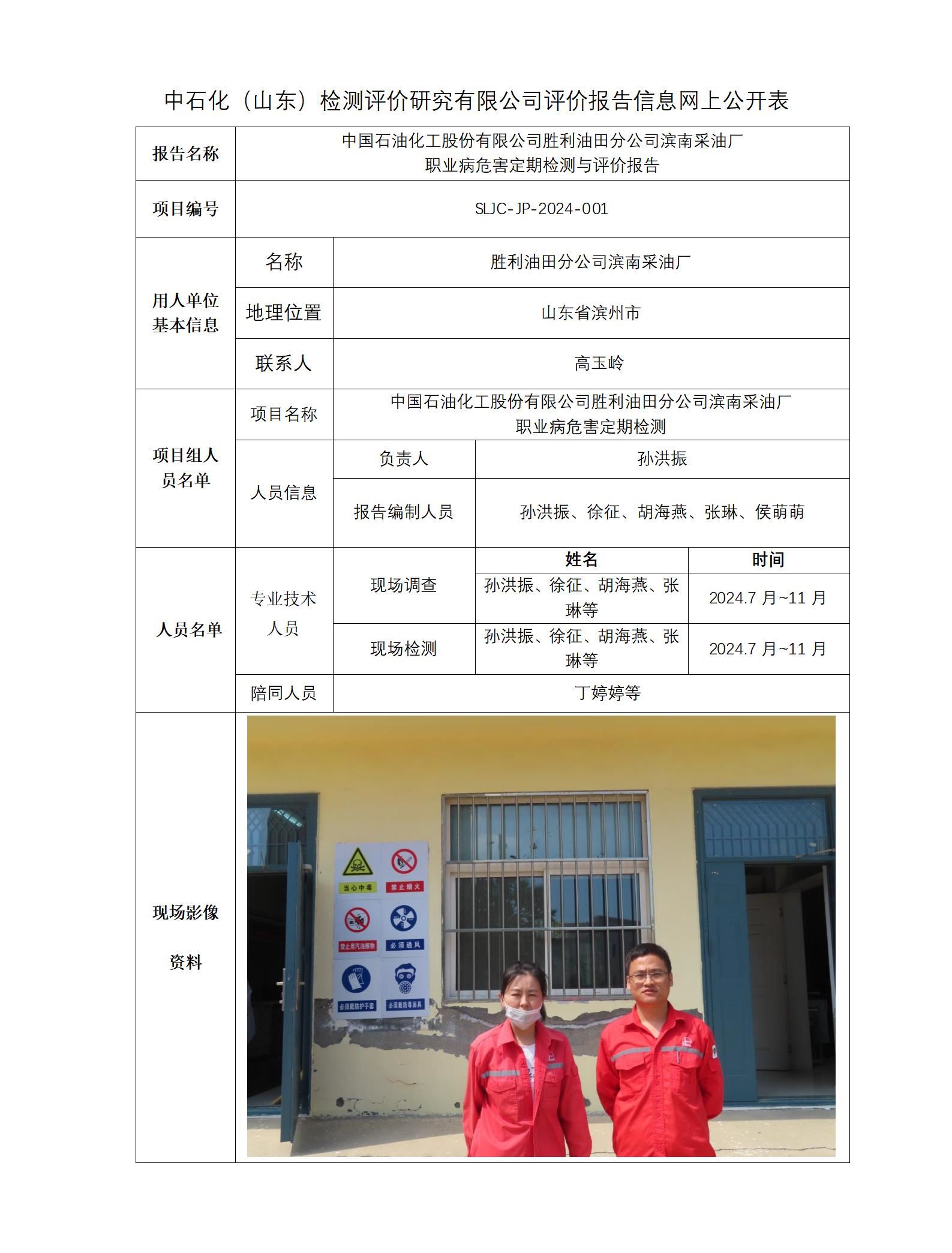 中国石油化工股份有限公司胜利油田分公司滨南采油厂 职业病危害定期检测与评价报告