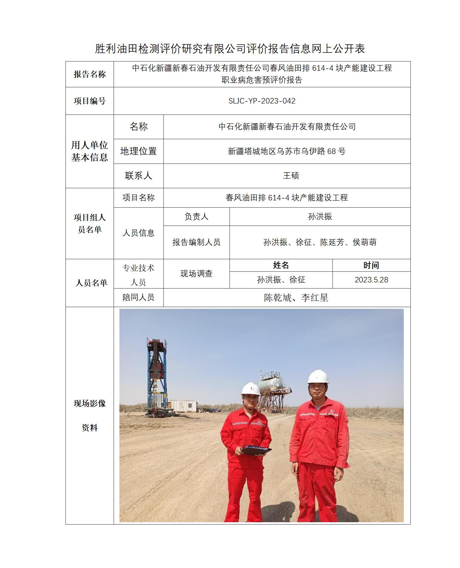 中石化新疆新春石油开发有限责任公司春风油田排614-4块产能建设工程 职业病危害预评价报告