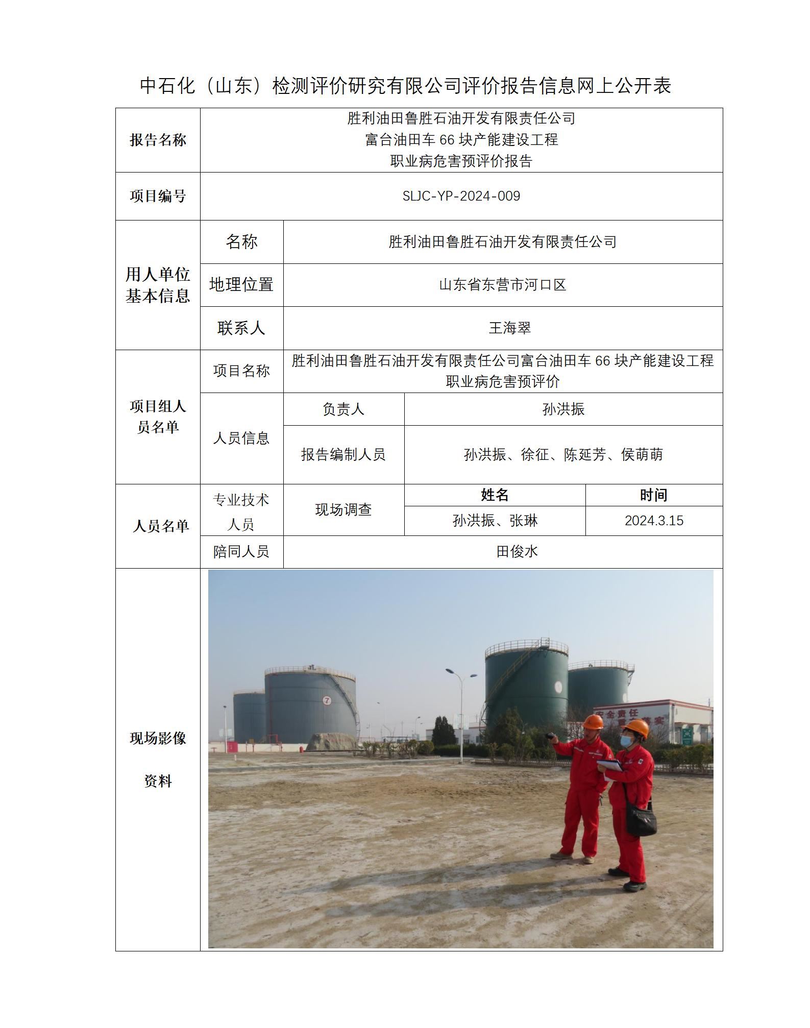 胜利油田鲁胜石油开发有限责任公司 富台油田车66块产能建设工程 职业病危害预评价报告