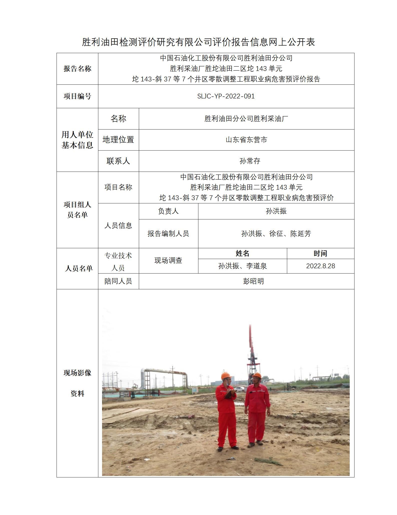中国石油化工股份有限公司胜利油田分公司 胜利采油厂胜坨油田二区坨143单元 坨143-斜37等7个井区零散调整工程职业病危害预评价报告