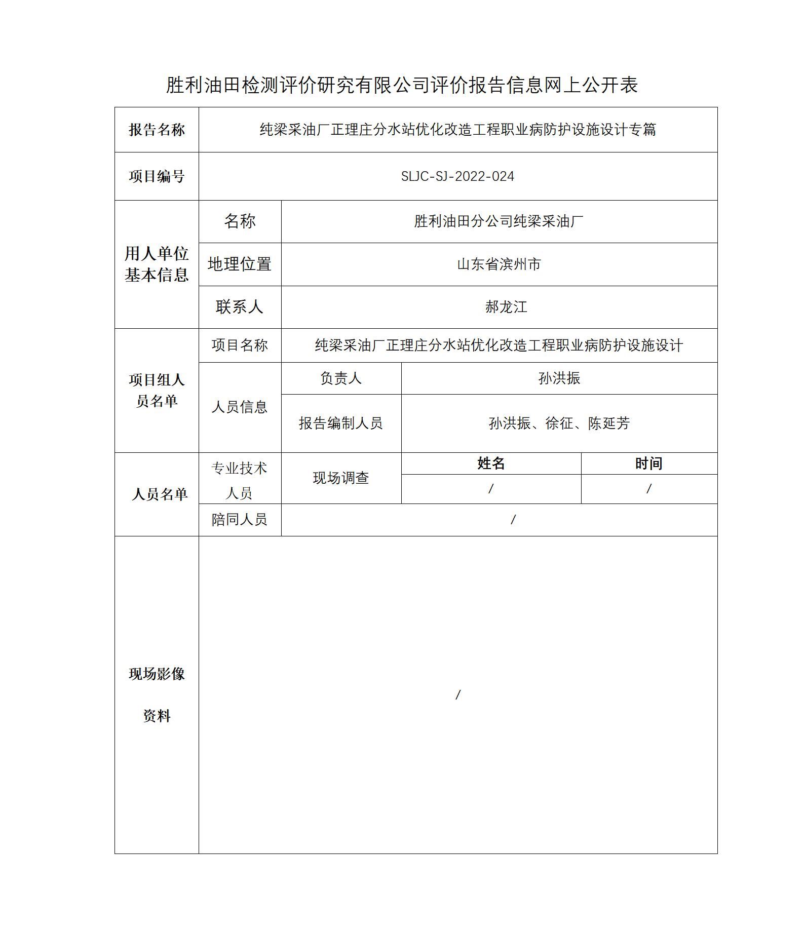 纯梁采油厂正理庄分水站优化改造工程职业病防护设施设计专篇