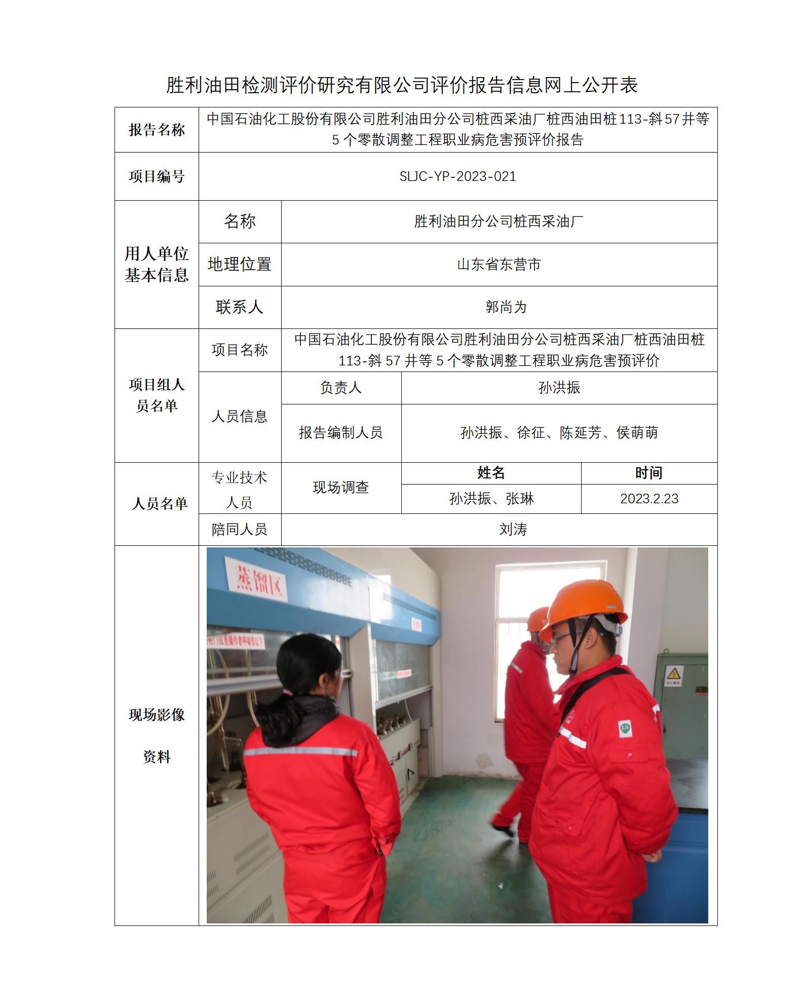 中国石油化工股份有限公司胜利油田分公司桩西采油厂桩西油田桩113-斜57井等5个零散调整工程职业病危害预评价报告