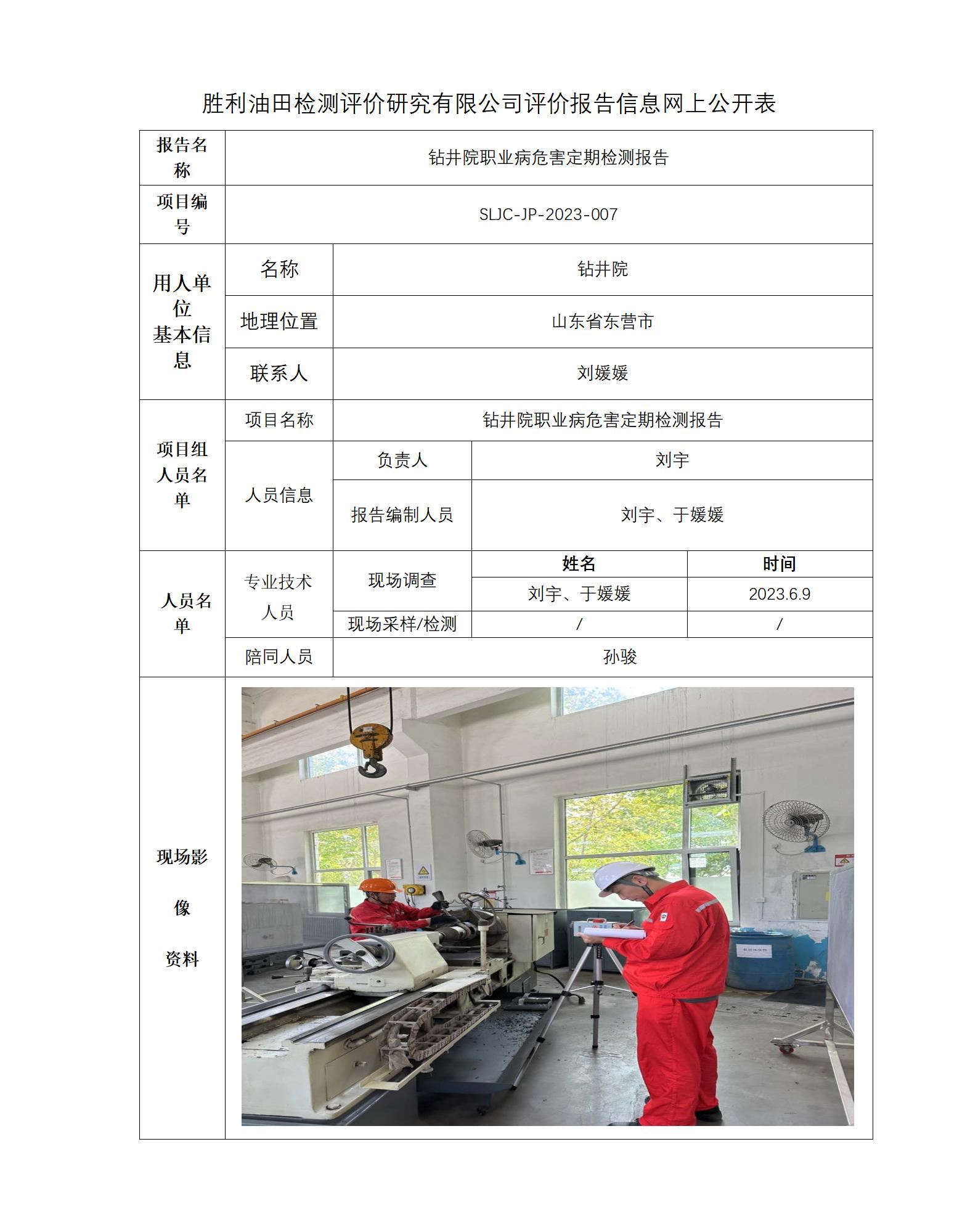 钻井院职业病危害定期检测报告