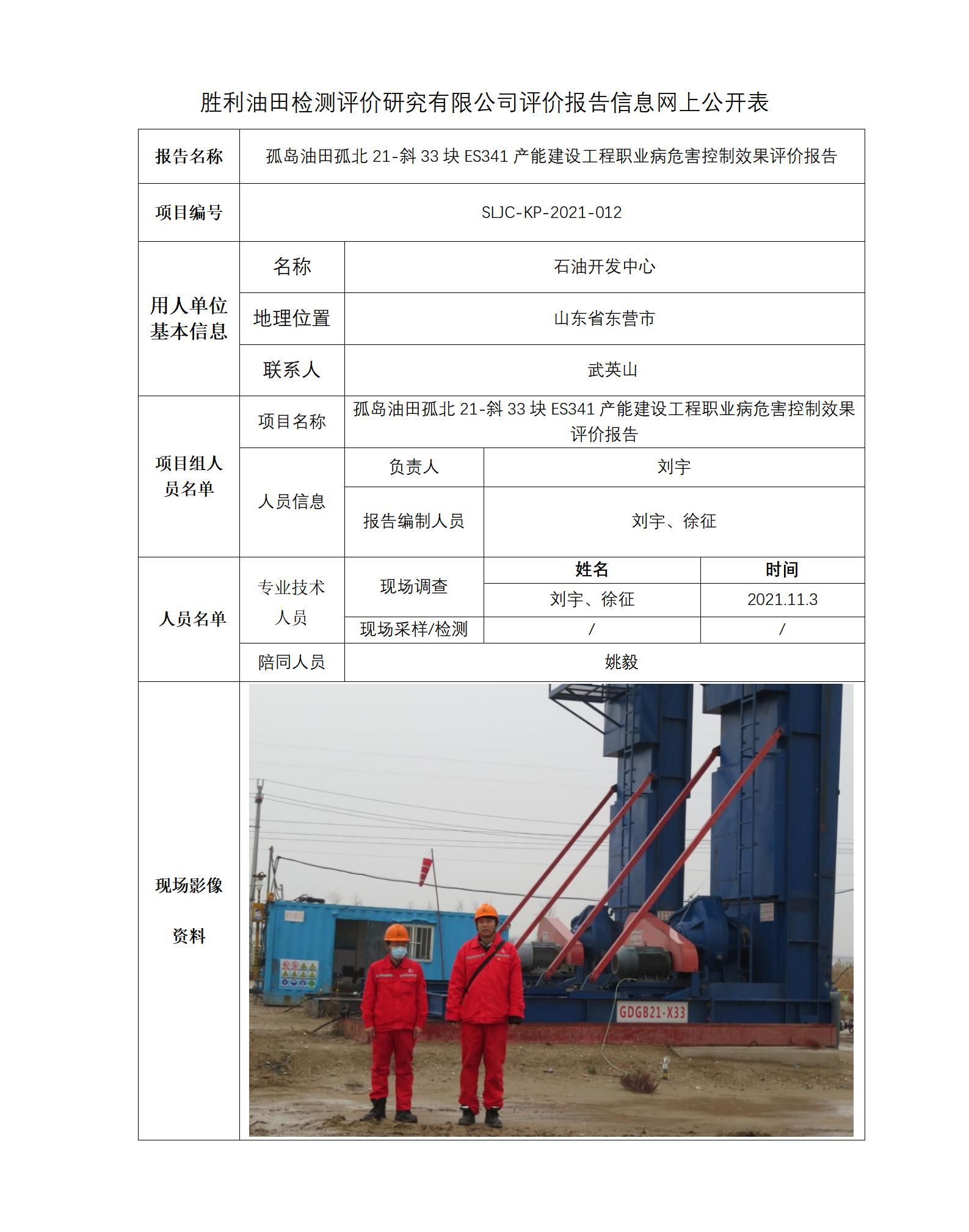 孤岛油田孤北21-斜33块ES341产能建设工程职业病危害控制效果评价报告