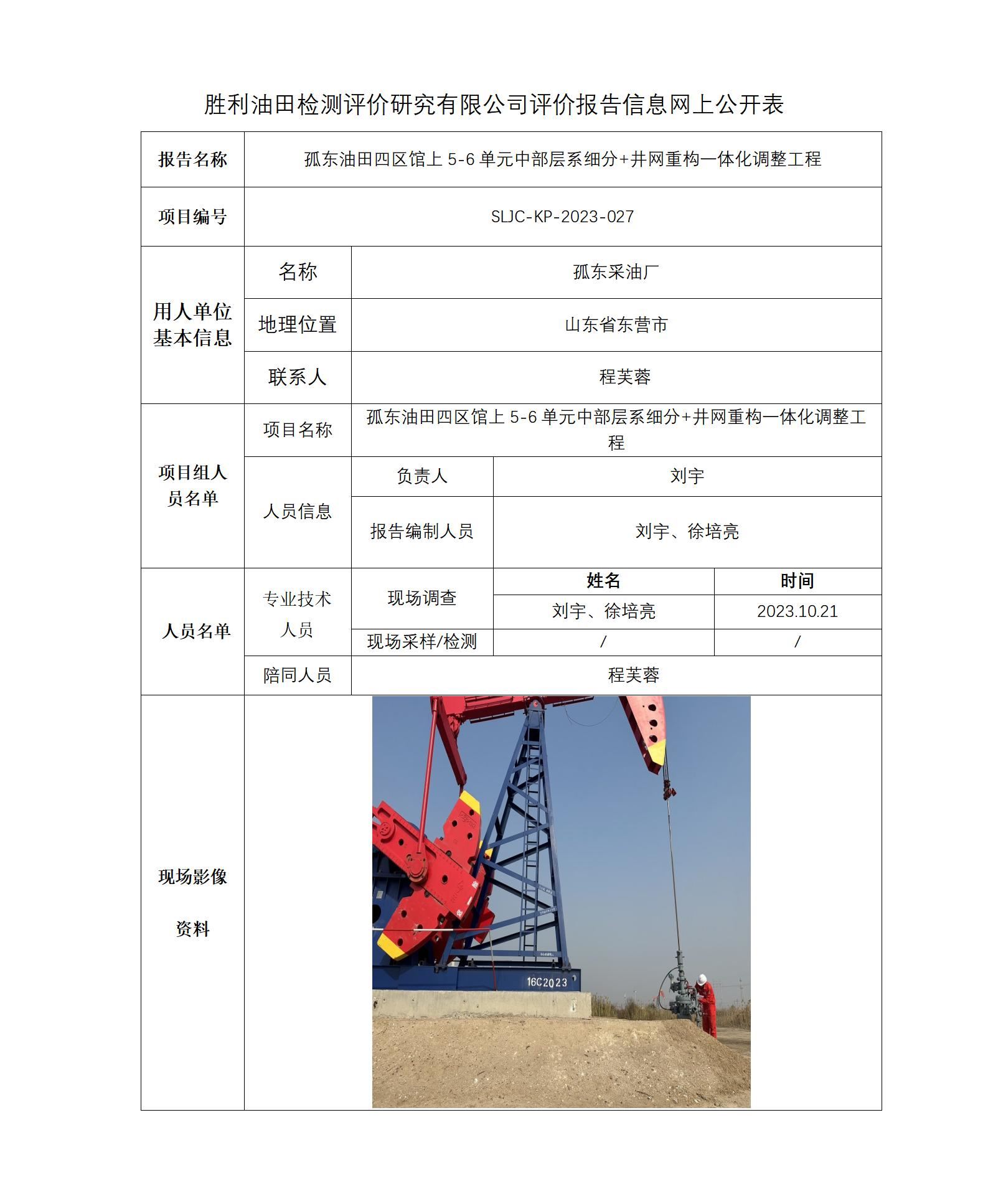 孤东油田四区馆上5-6单元中部层系细分+井网重构一体化调整工程