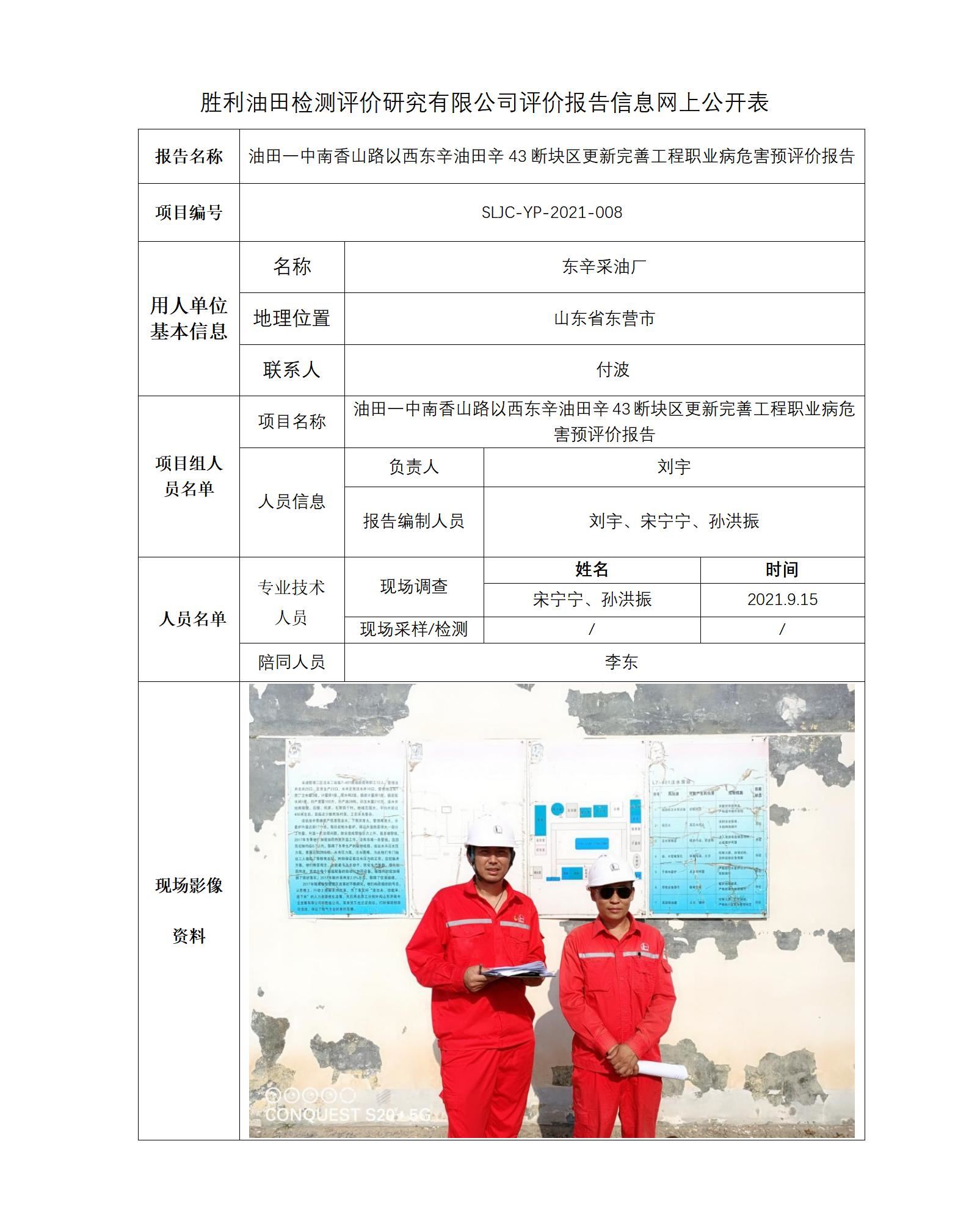 油田一中南香山路以西东辛油田辛43断块区更新完善工程职业病危害预评价报告