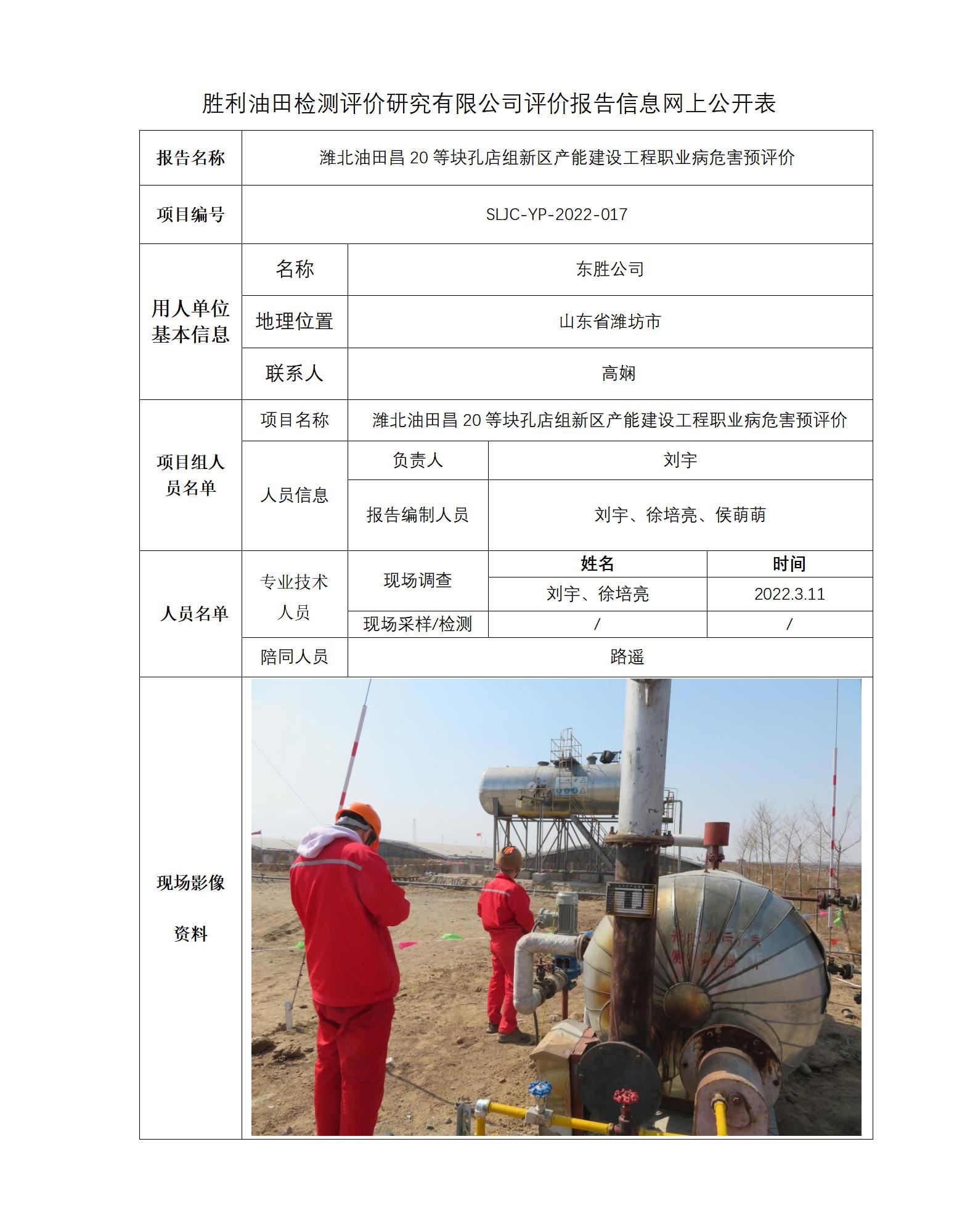 潍北油田昌20等块孔店组新区产能建设工程职业病危害预评价