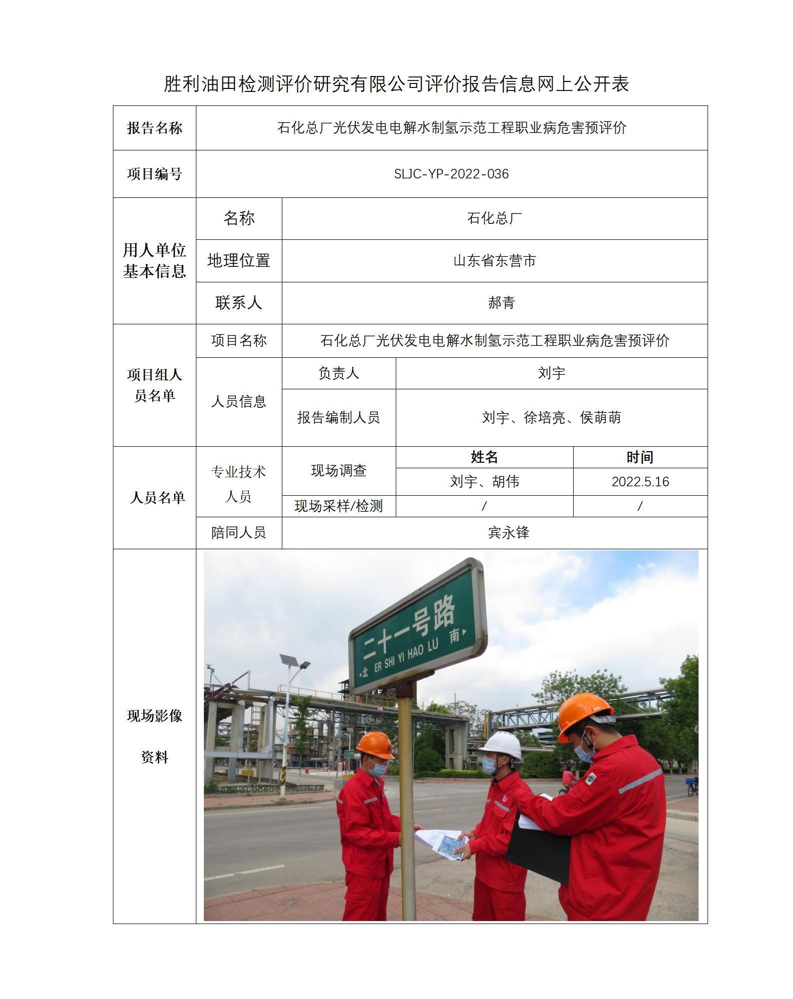 石化总厂光伏发电电解水制氢示范工程职业病危害预评价