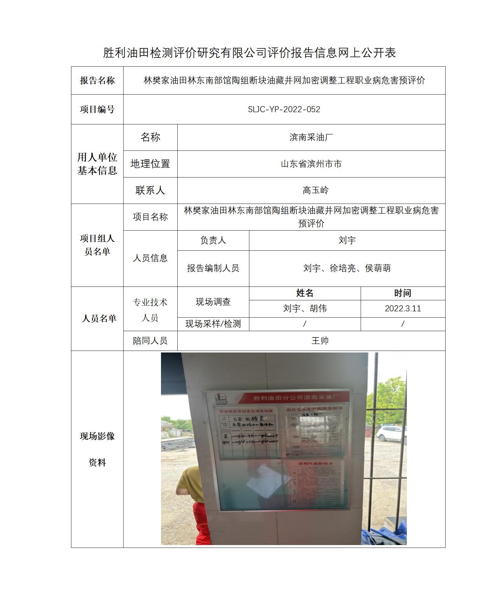 林樊家油田林东南部馆陶组断块油藏井网加密调整工程职业病危害预评价