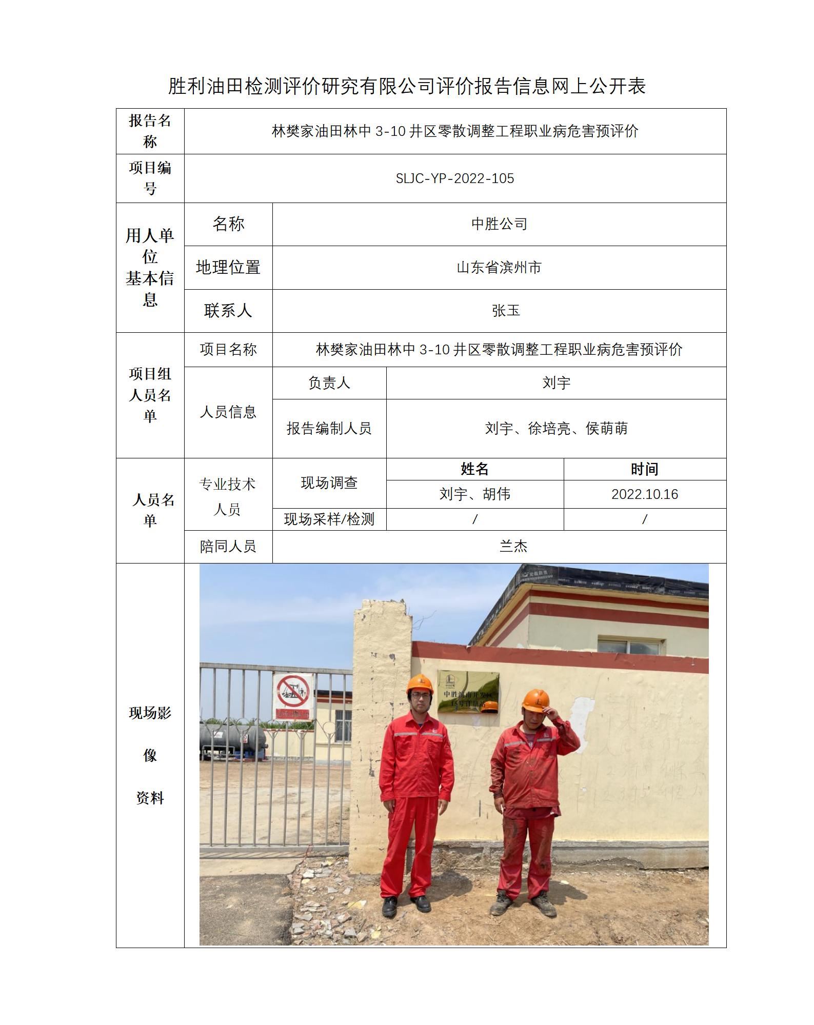 林樊家油田林中3-10井区零散调整工程职业病危害预评价