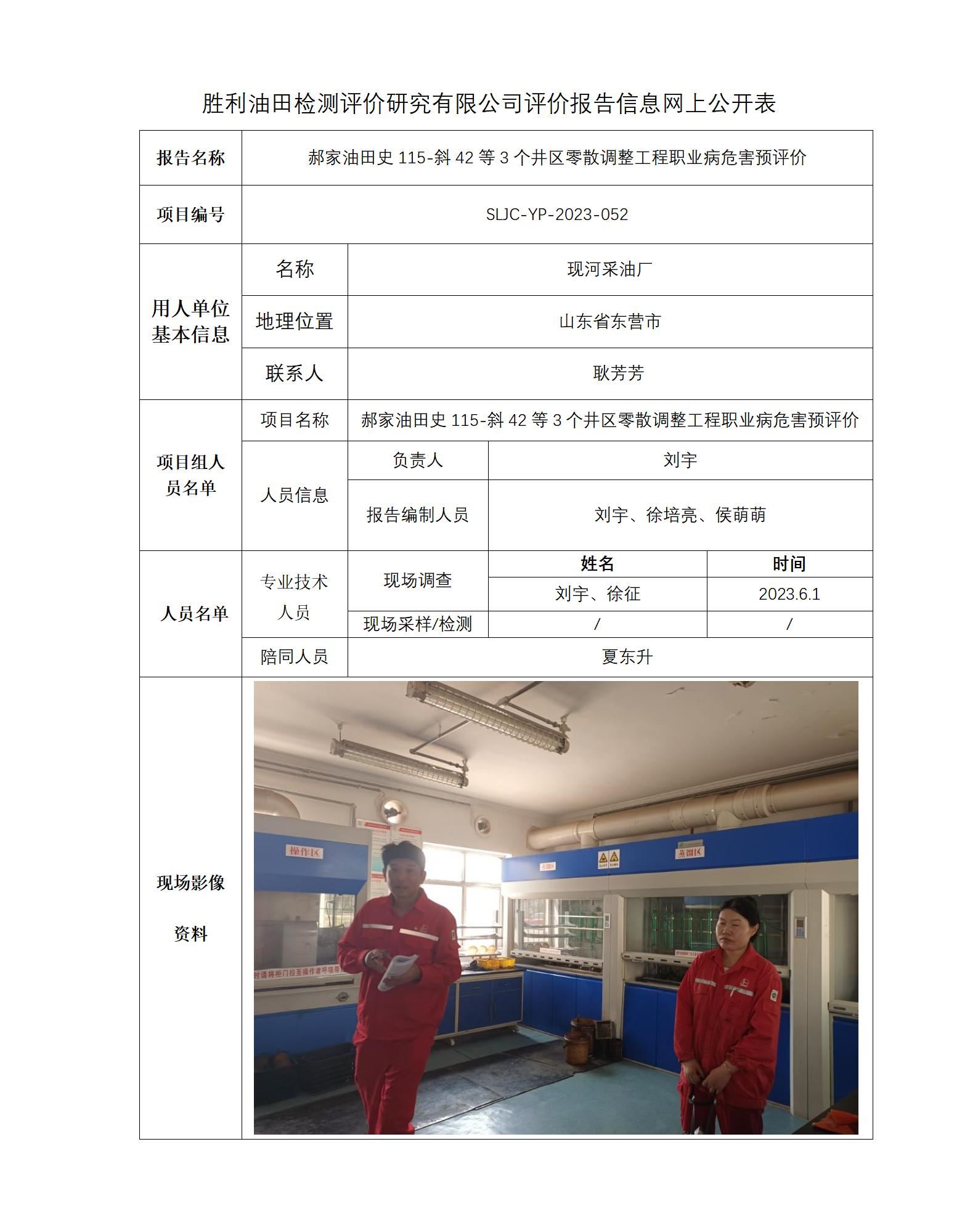 郝家油田史115-斜42等3个井区零散调整工程职业病危害预评价