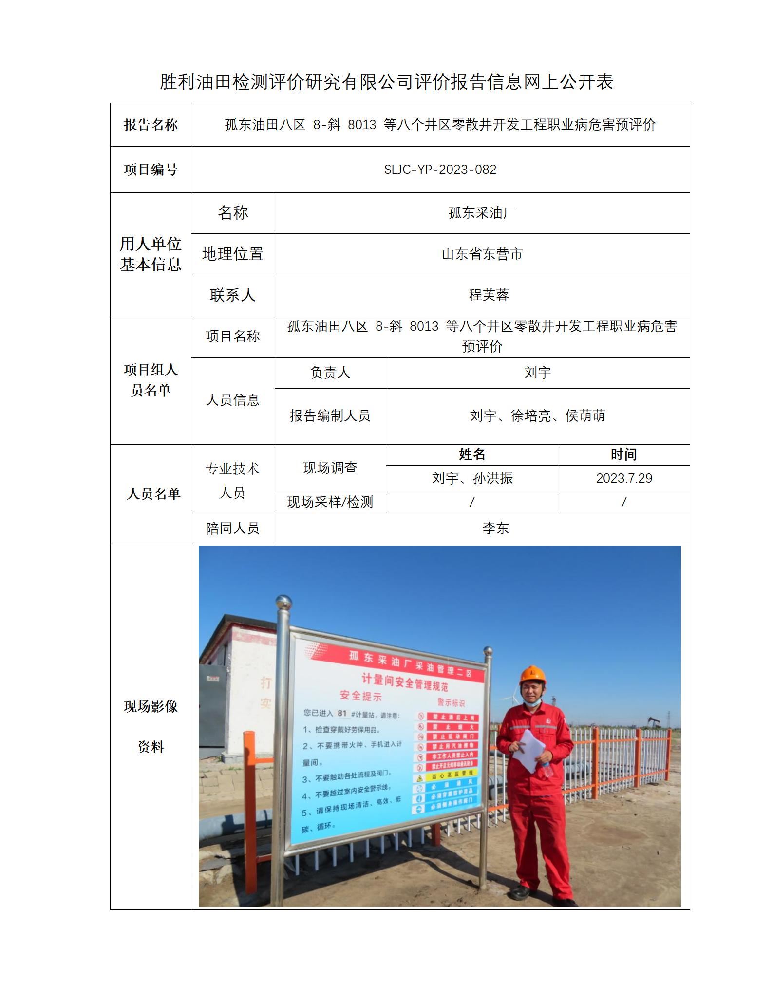 孤东油田八区 8-斜 8013 等八个井区零散井开发工程职业病危害预评价